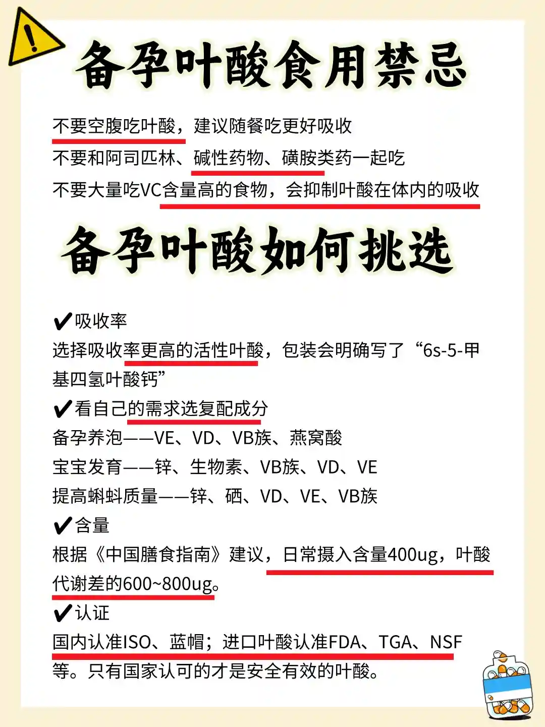 ⚠️不要空腹吃叶酸,建议随餐吃更好吸收