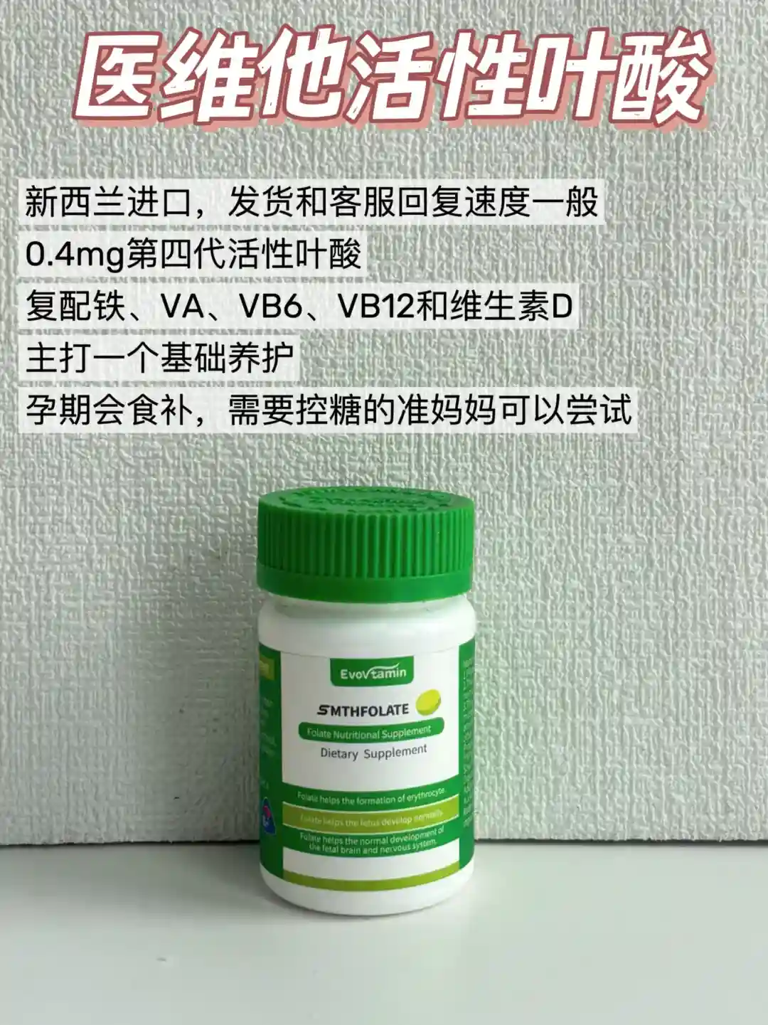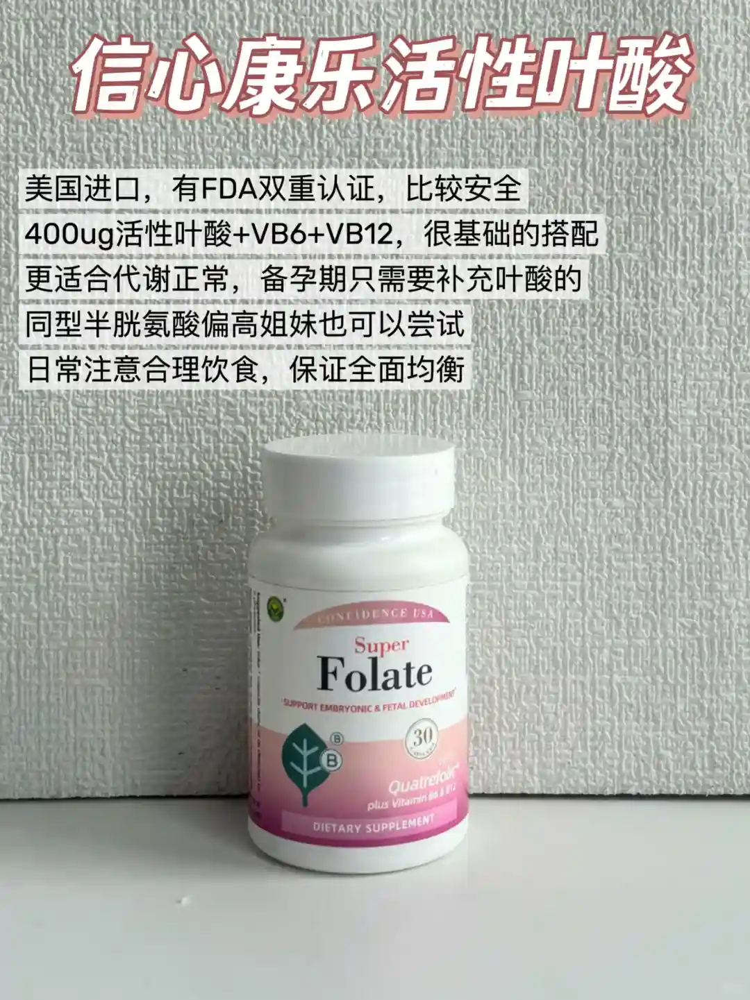 1.配料表:目前,国家仅允许“6s-5-甲基四氢叶酸钙”作为活性叶酸的来源,配料表/瓶身会明确标明。其他来源的慎选‼️