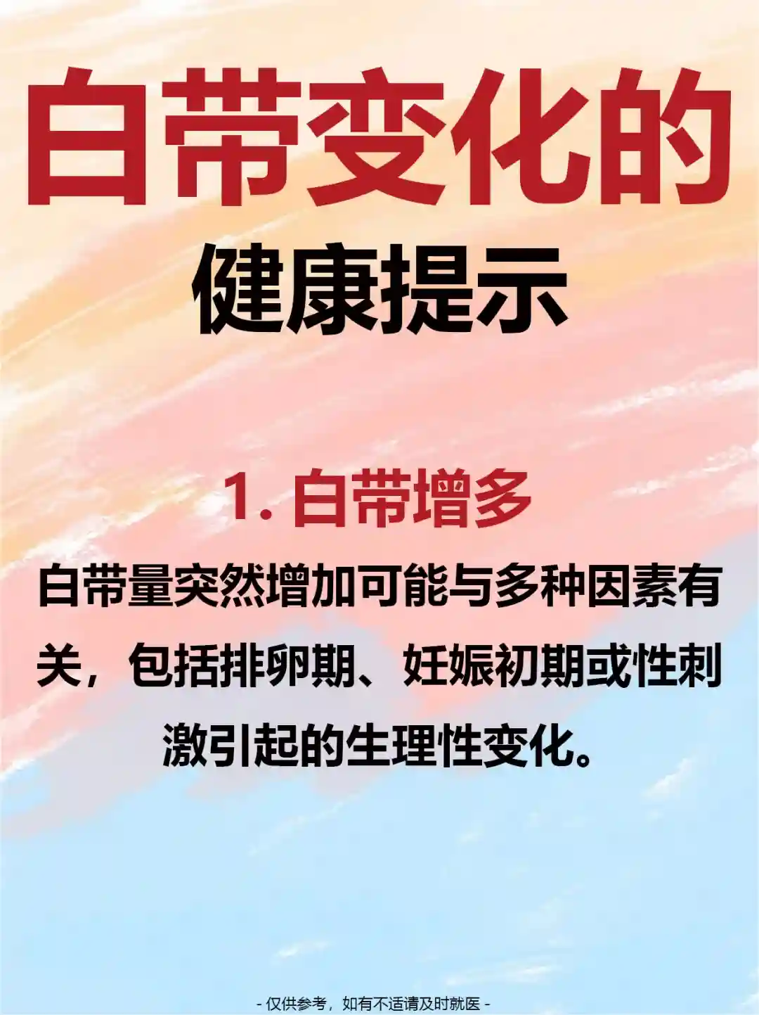 白带量突然增加可能与多种因素有关,包括排卵期、妊娠初期或性刺激引起的生理性变化。