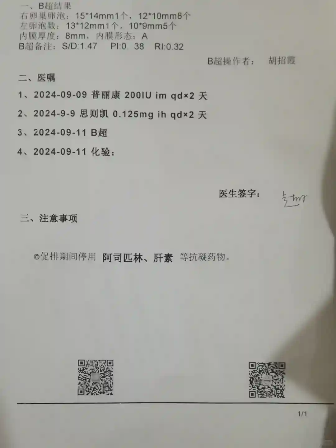 走之前不要忘记付下次抽血和B超费用。