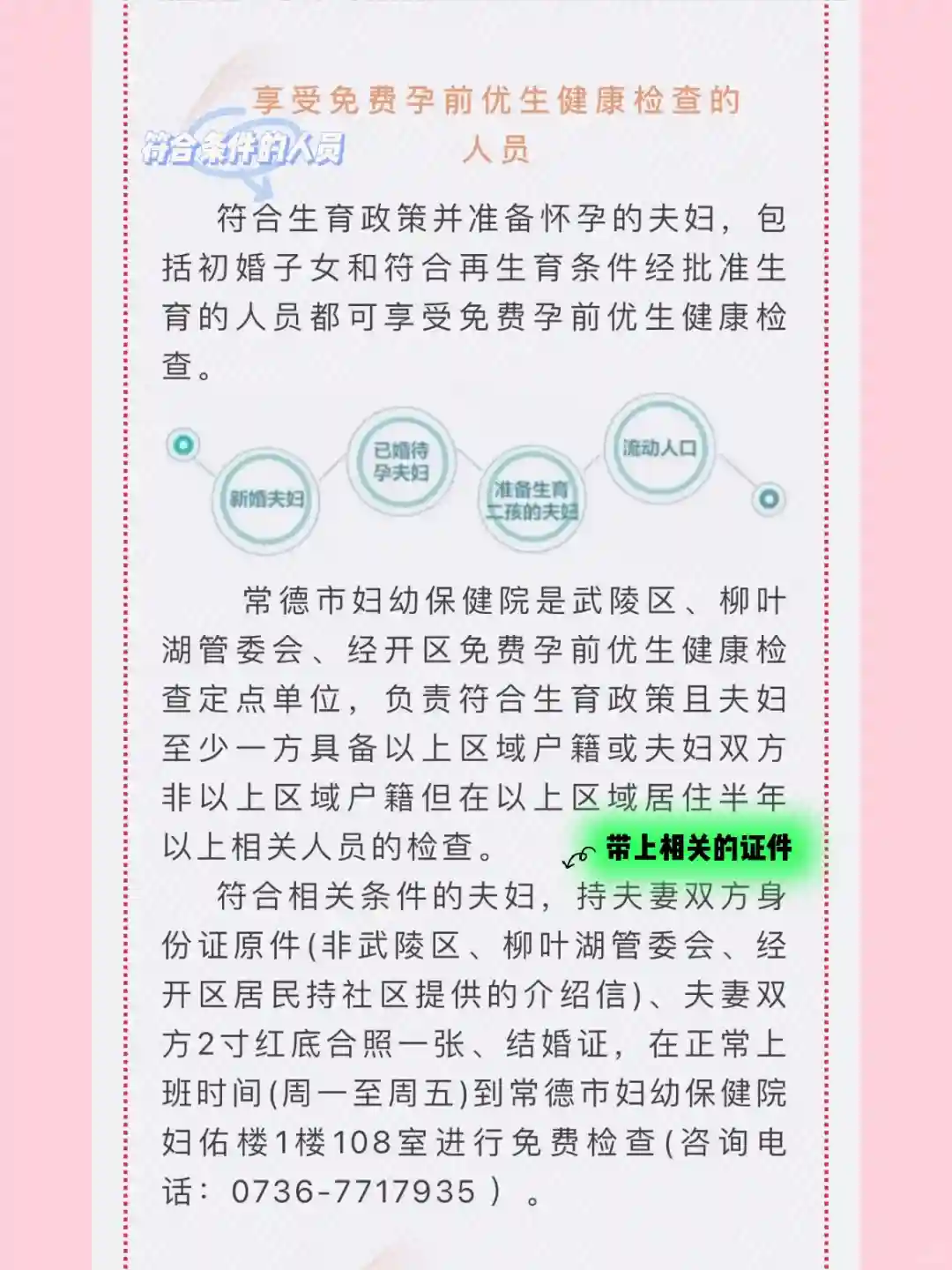 1️⃣首先在“常德全媒”和“常德市妇幼保健院”这两个公众号里找到关于孕前优生检查的文章,里面有详细指南。