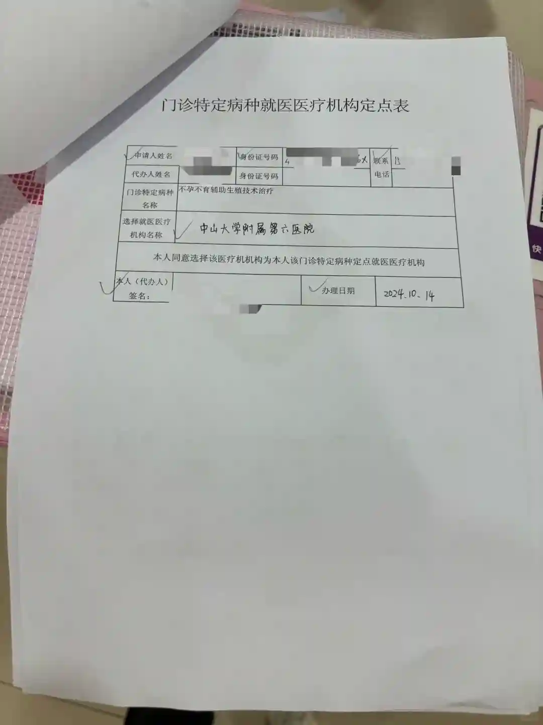资料填完交给生殖科前台统一回收交给社保局处理。