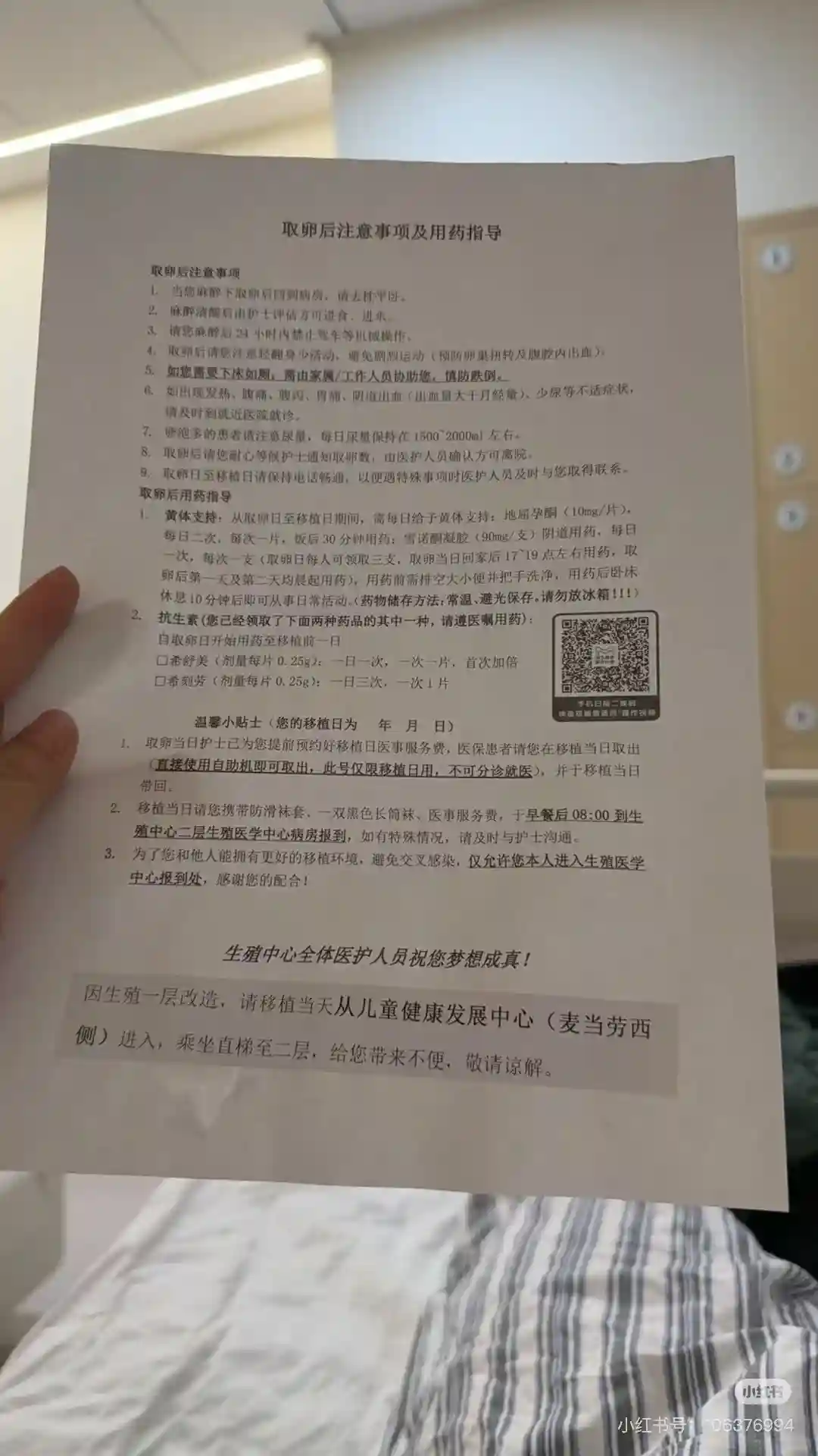 取卵钱一天0点后不吃不喝;早上10:30到达医院🏥等大夫来接,去二层住院移植处,我们应该是今天最晚的一批。中午11点准备好,护士在手上埋麻醉针。休息都下午13:00(整个过程不能吃喝)我是下午第一个进去的,过程很快。前后10分钟;取卵前大夫上了麻醉呼吸机,还没等麻醉上来明显感觉有东西插了进去,后来就不太记得了,整个过程没有感觉,除了麻醉可能吸多了迷迷糊糊半天才醒,其他都还好。没有不舒服的感觉,也感受不到疼痛;