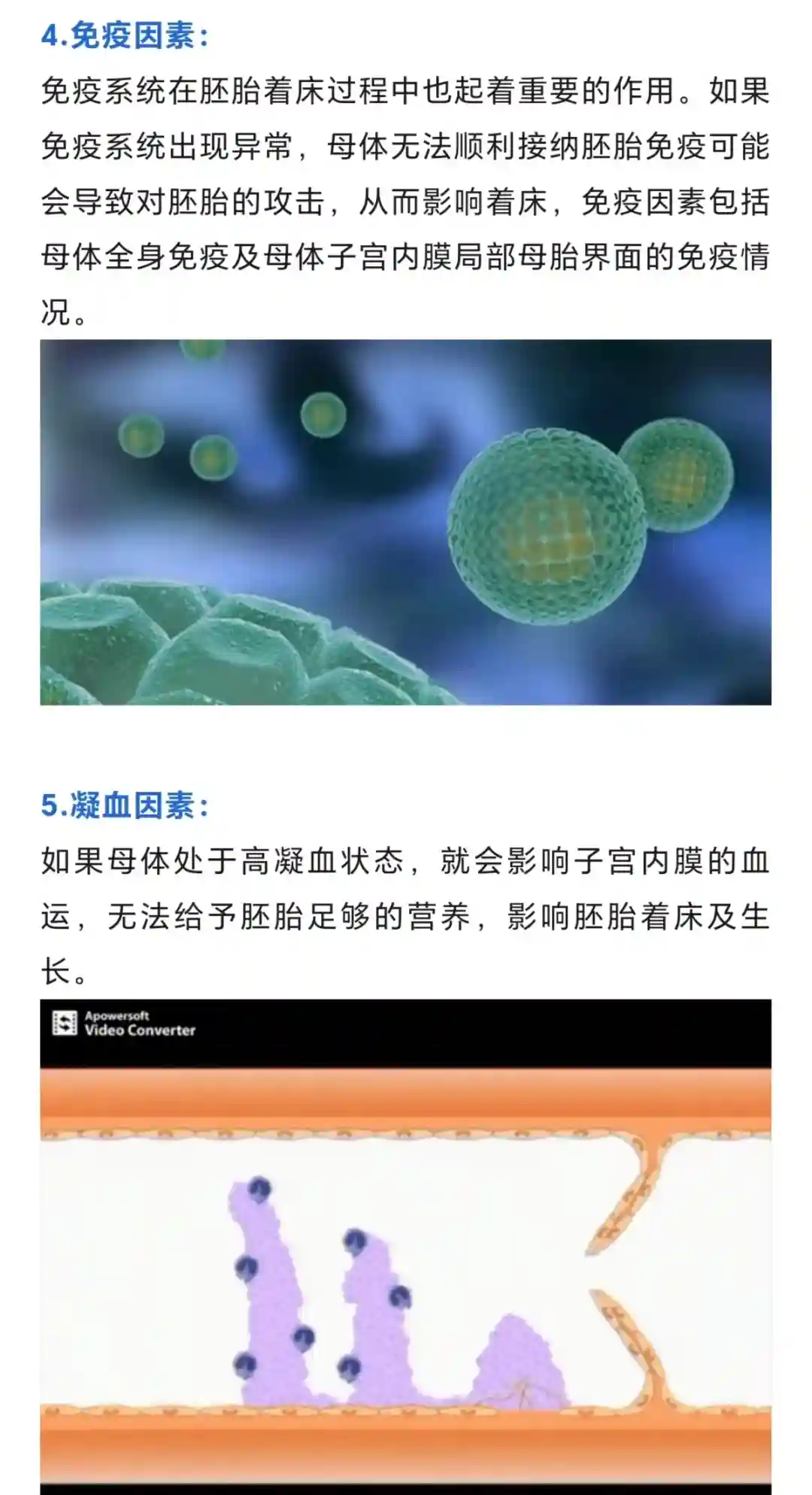 4.免疫因素:免疫系统在胚胎着床过程中也起着重要的作用。如果免疫系统出现异常,母体无法顺利接纳胚胎免疫可能会导致对胚胎的攻击,从而影响着床,免疫因素包括母体全身免疫及母体子宫内膜局部母胎界面的免疫情况。