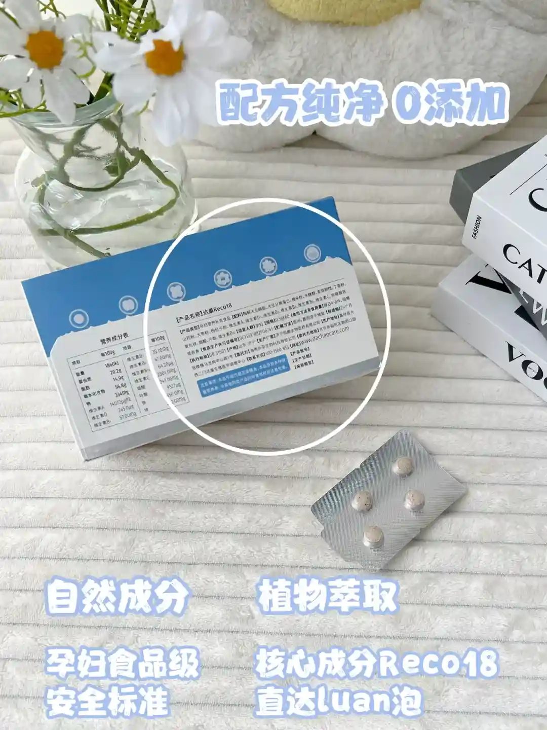 一次四粒,备孕前三个月每天坚持服用高龄备孕最大的坎就是卵巢功能,对比N款产品后,我选了达巢Reco18:
