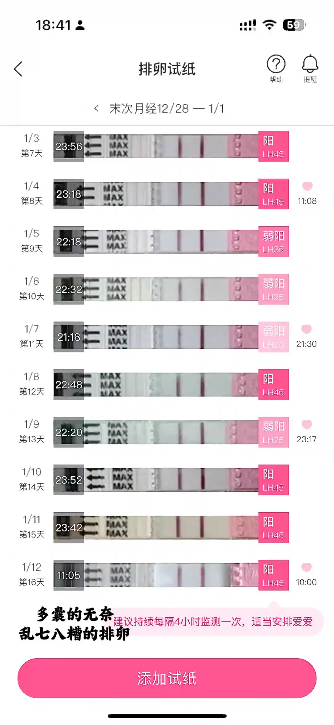24年10月开始认真备孕,自己在家用排卵试纸监测了30天,无果,天天弱阳