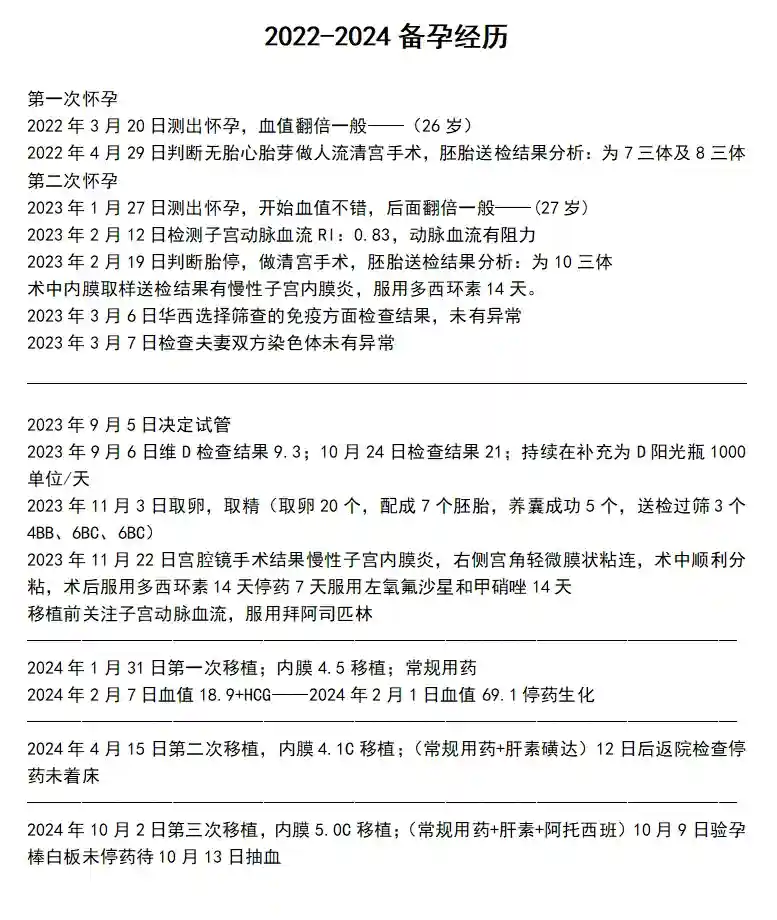 2024年10月2日第三次移植,内膜单层5.0C移植;(常规用药+肝素+阿托西班)10月9日验孕棒白板未停药待10月13日抽血