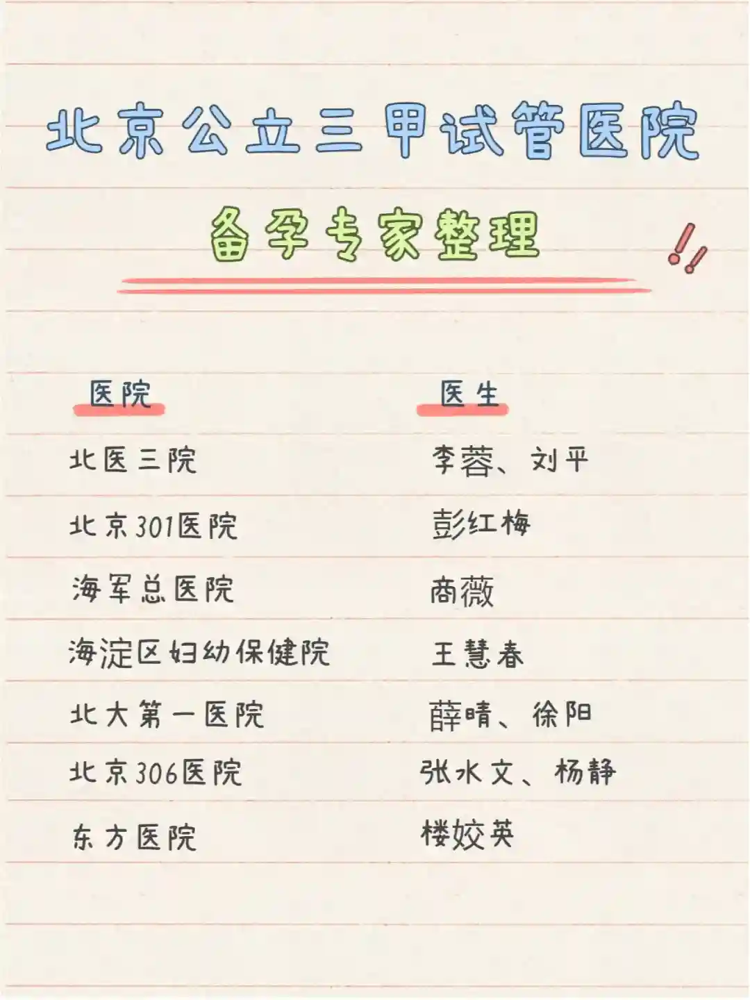北京公立三甲试管医院备孕专家整理