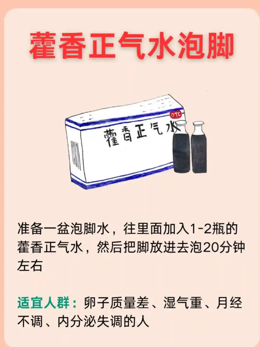 准备一盆泡脚水,往里面加入1-2瓶的藿香正气水,然后把脚放进去泡20分钟左右