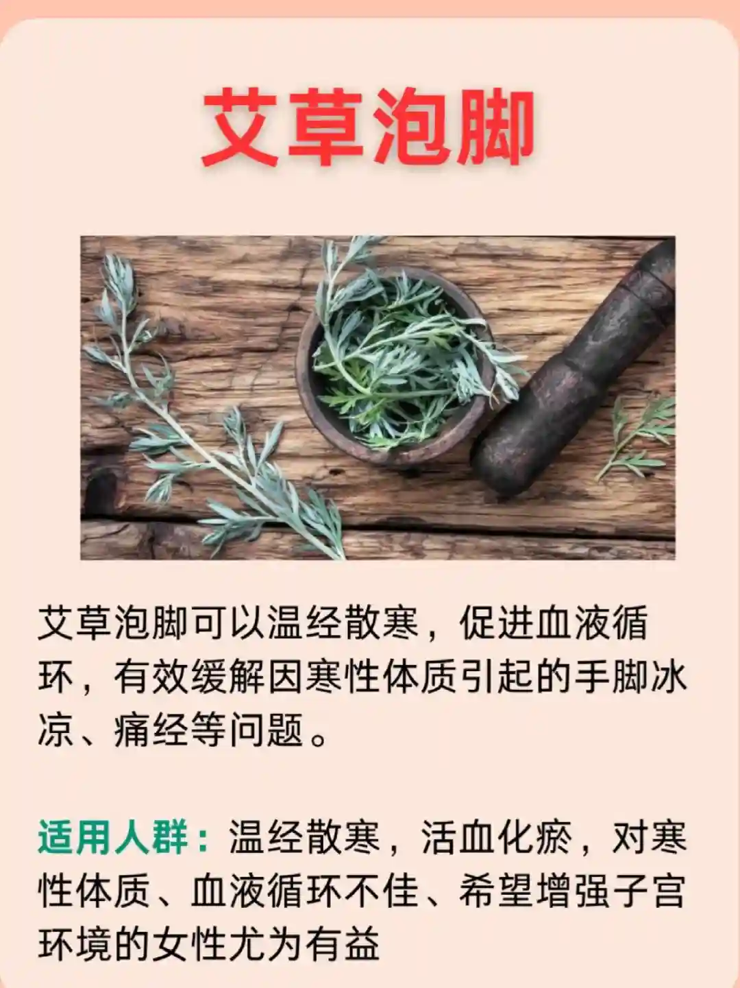 草泡脚可以温经散寒,促进血液循环,有效缓解因寒性体质引起的手脚冰凉、痛经等问题。