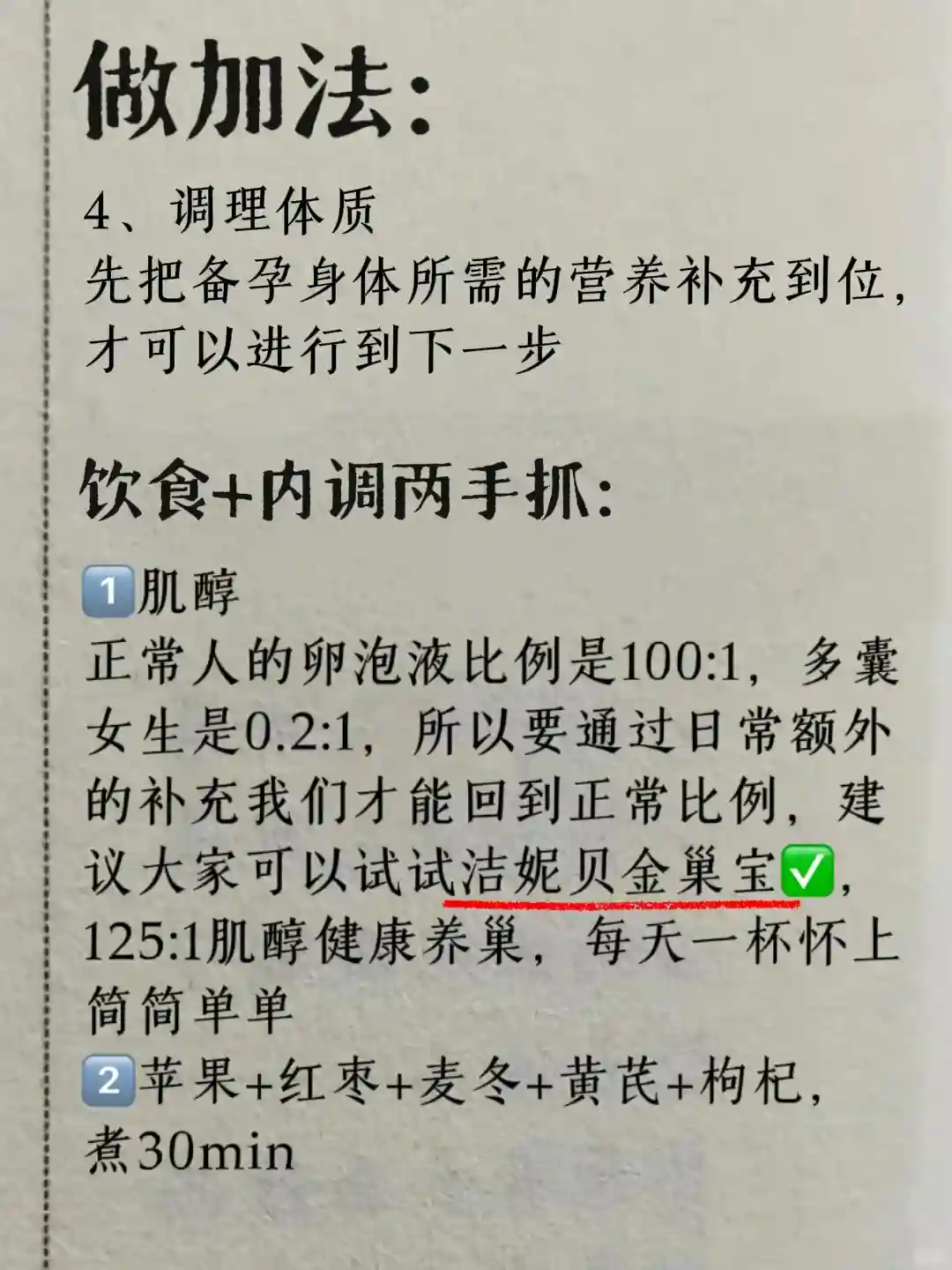 正常人的卵泡液比例是100:1,多囊女生是0.2:1,所以要通过日常额外的补充我们才能回到正常比例,提高自怀概率‼️但是平时通过食补来补充肌醇的难度太大了