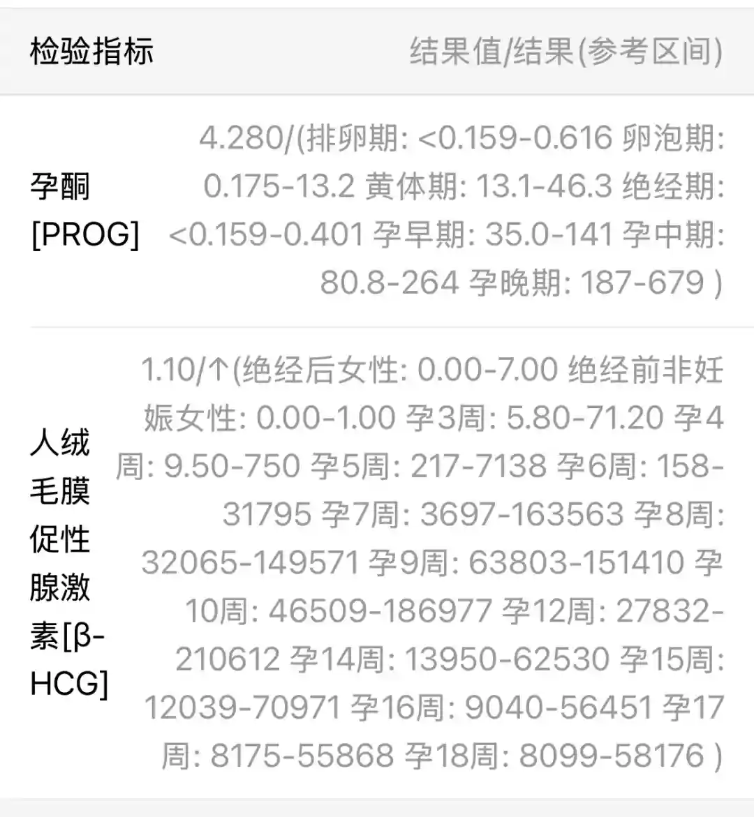 12月5号末次,12月15安排了一次体内,后面都没有安排了,月经推迟后上周六1月11号去医院抽血,结果如图,医生让这周再去一次。