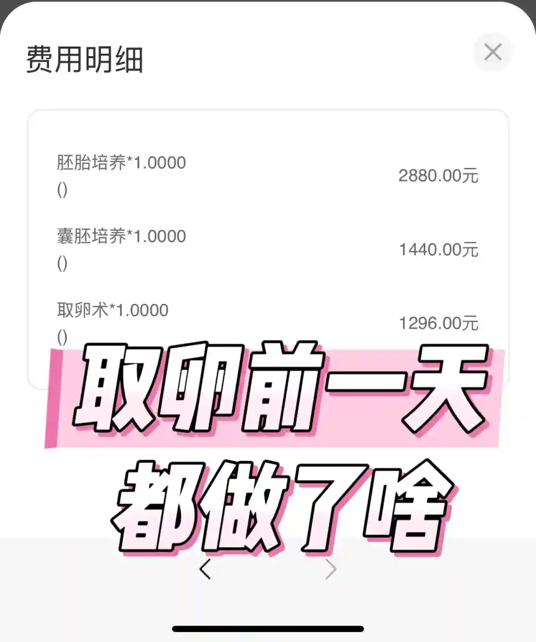胚胎培养:2800元,囊胚培养:1440元,取卵手术费:1296元,合计2880+1440+1296=5616元,报销后:2502元