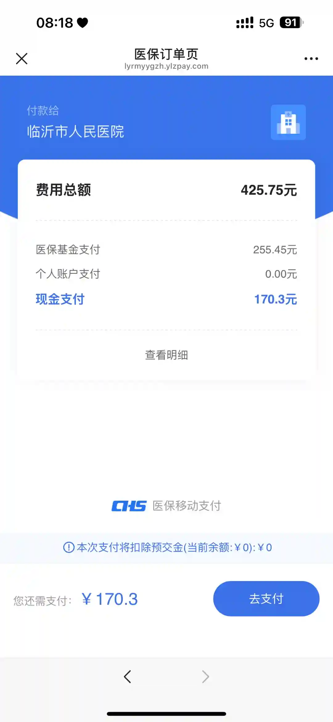 这个大额报销只能走人工窗口走缴费,手机和自助机器交不了。