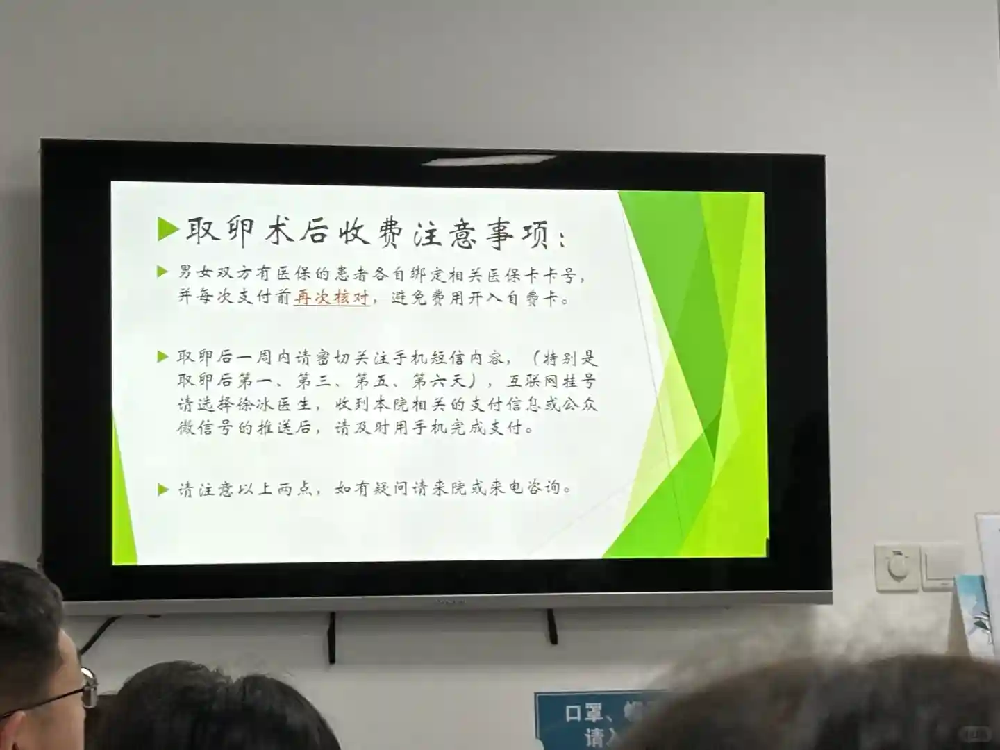 再讲讲队友需要做什么,我们进去取卵期间他就在外面等叫名字排精。我们是一代,但是队友促排期间发烧状态很差,当天排精非常不理想。11点左右护士会告诉大家排精的结果合不合格,队友不合格,让我们现场一代转二代,我们接受了,后来坐下来想想不甘心决定再试一次,第二次排精结果还可以,护士说满足一代要求,又改回了一代