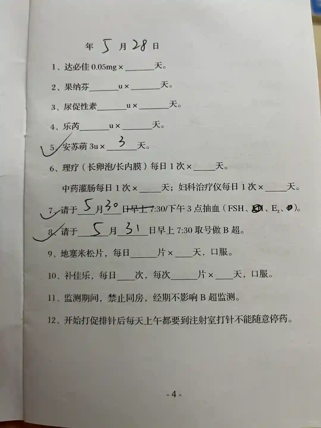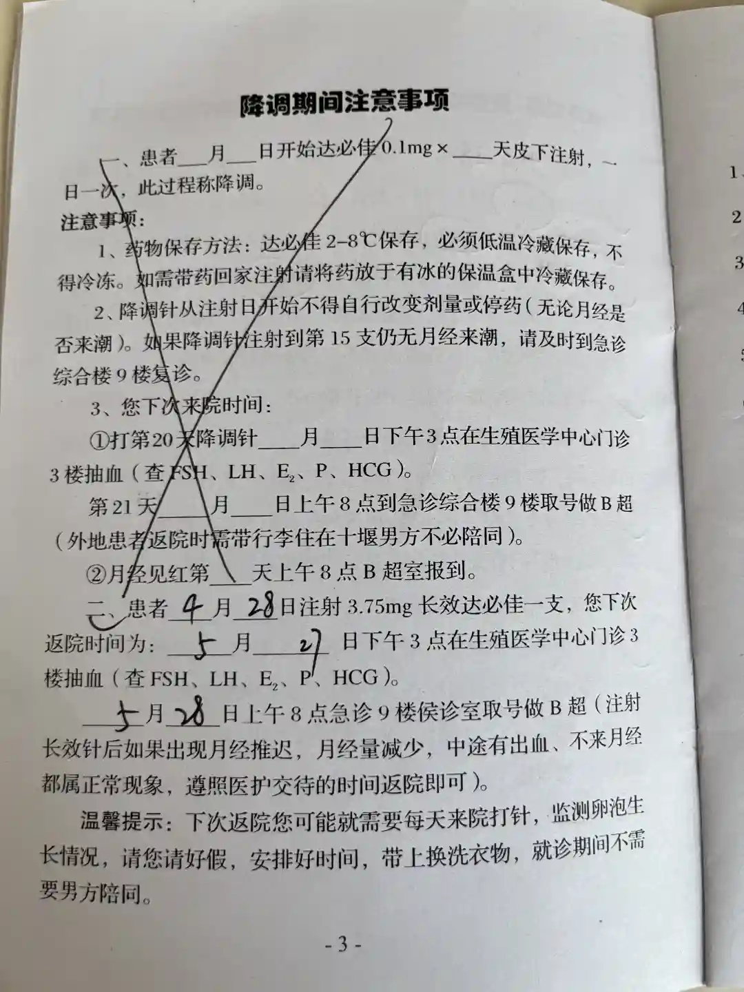 人家特意跟我说得打三天针,我这个还没开始促排,然后还是后天下午三点去抽血,大后天早上做B超。