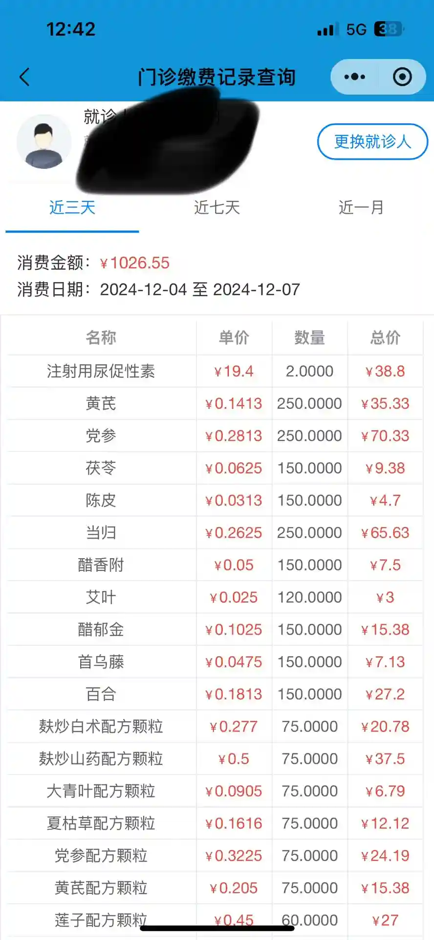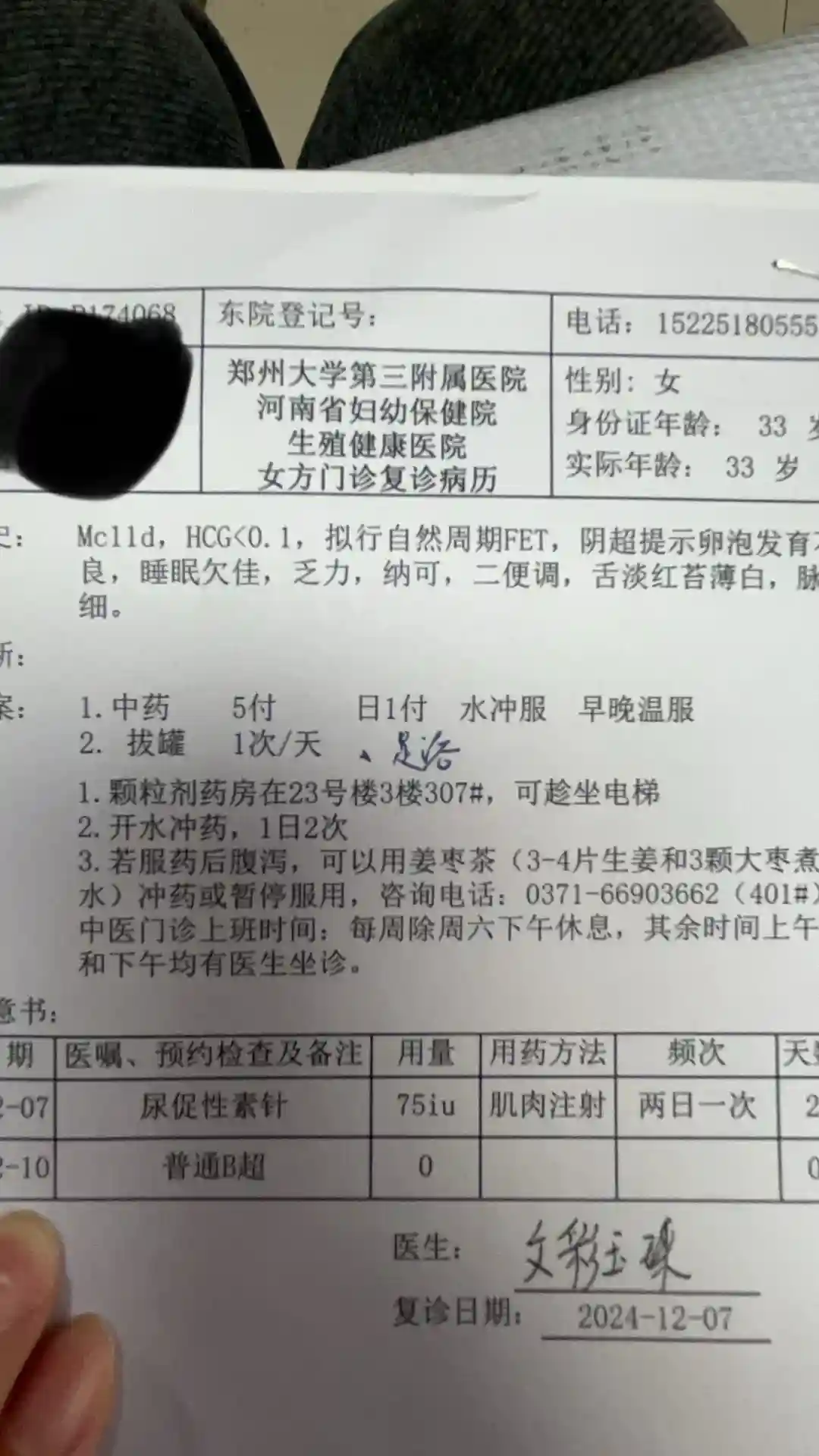 今日花费:促排针➕中药➕阴超➕挂号共1046元