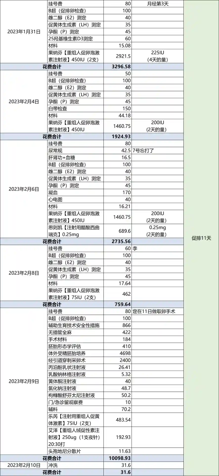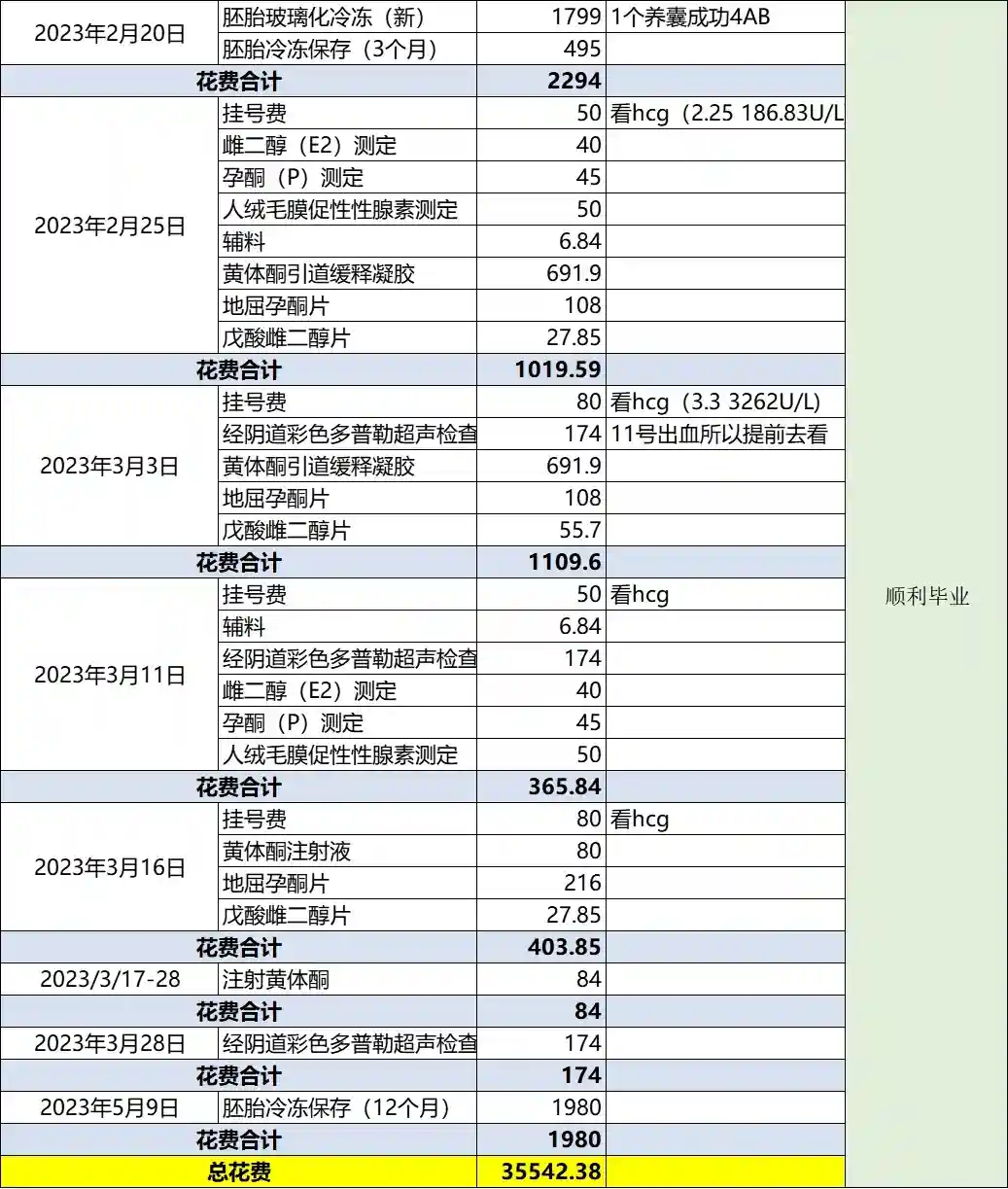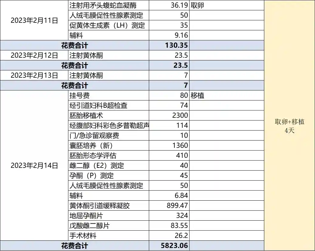 关于花费:一促一移+养囊+冻卵=3.5w(图片是我的用量和花销);