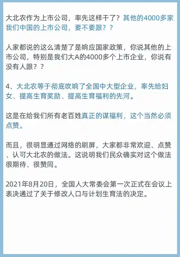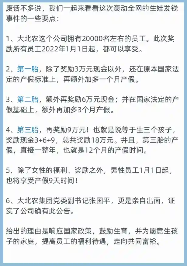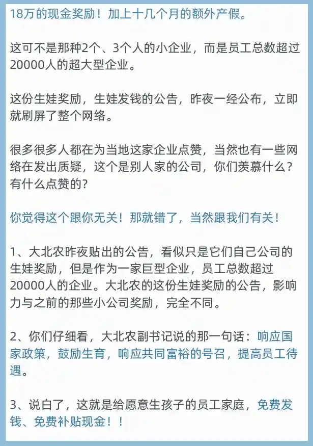 01、大北农:响应国家政策,鼓励生育,18万的现金奖励!额外加十几个月产假