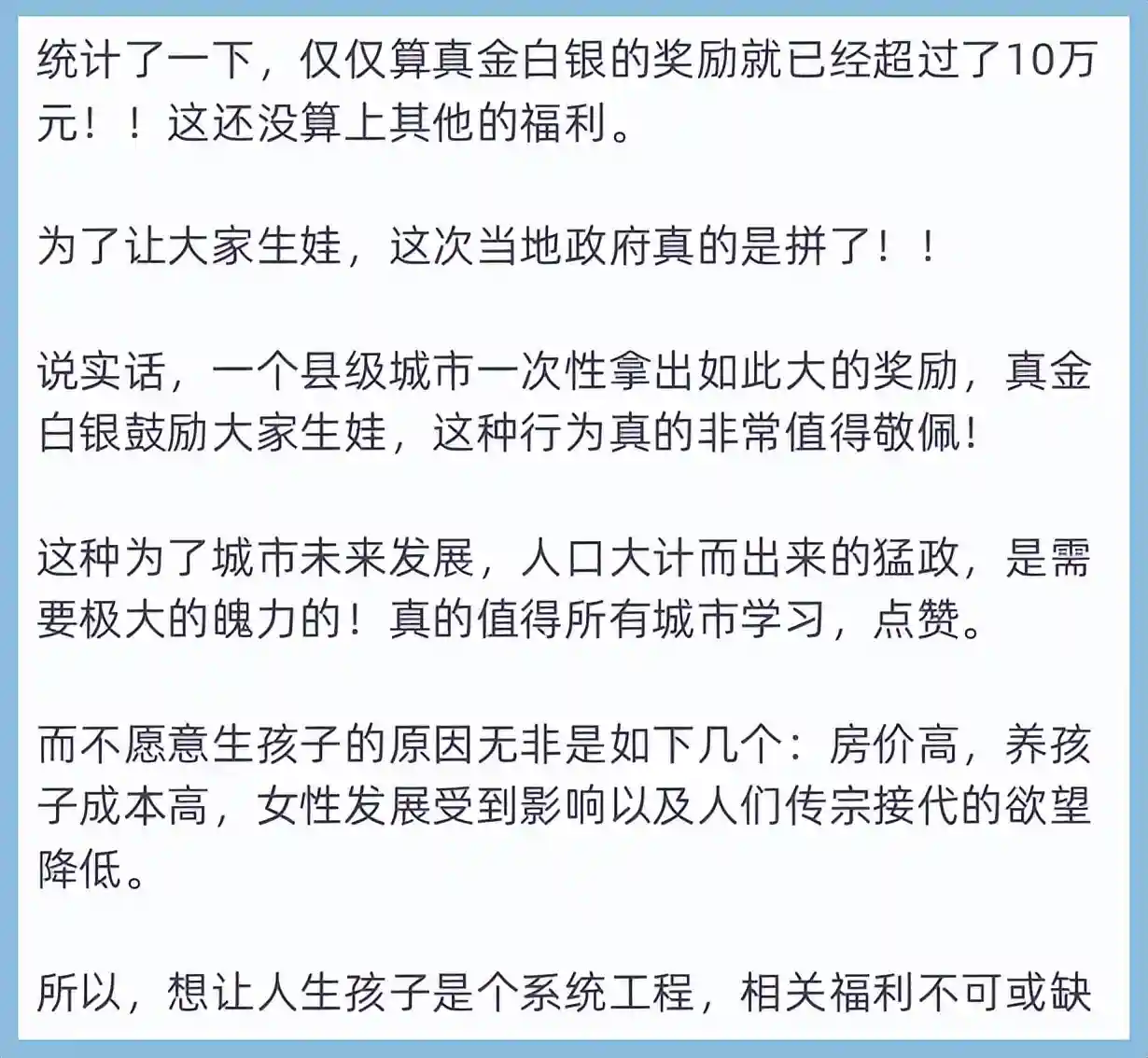 大概计算了一下,生娃奖励有十万之多。