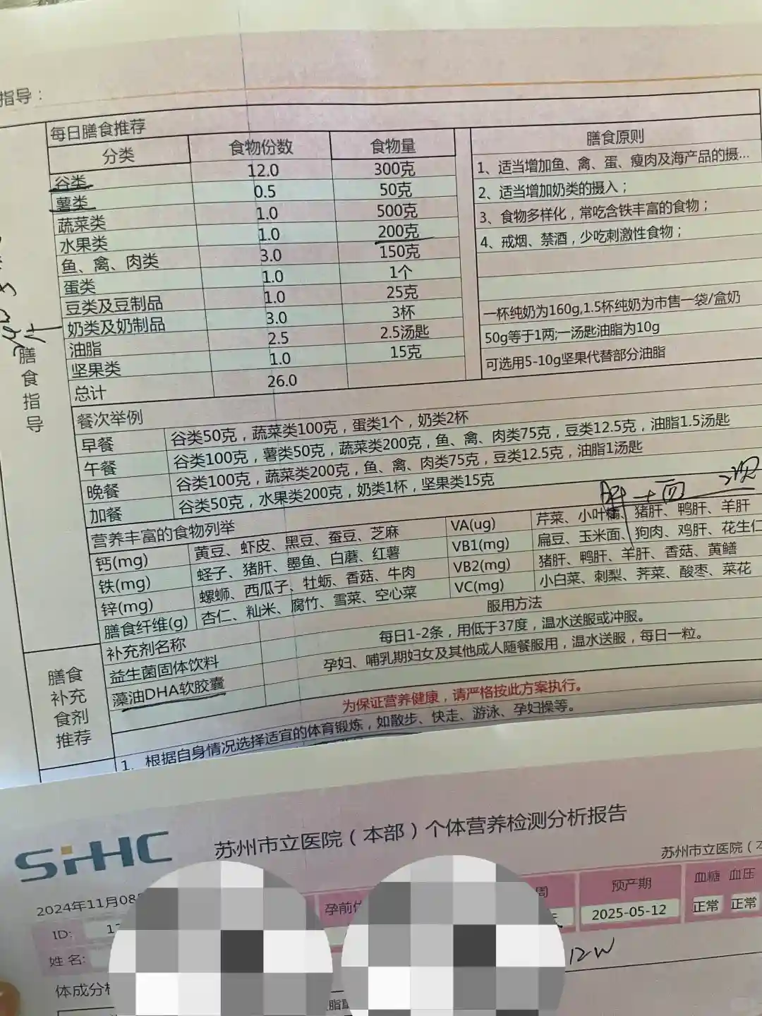 8️⃣营养科:先在沙发区由实习生小哥 询问填写,每顿吃食品类及用量,再去诊室 脱鞋脱袜不带配饰,测一个类似健身房的体脂仪的报告,待营养监测分析报告生成,医生会给详细的饮食健康指导,比如孕期体重增长的合理范围、体脂率情况、目前的饮食习惯哪些需保持、哪些需调整,提醒要开始吃DHA