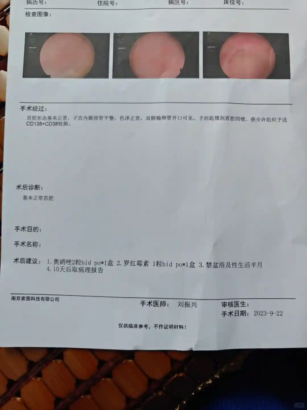 下午一点坐在门口有护士会叫进去,先去扎留置针,真尼玛疼啊,扎完等叫去做宫腔镜,很幸运的我排在了第二个,反正睡一觉就结束了,迷迷糊糊被老公叫醒要给别的病人挪床位,然后就可以回家了,整个过程其实没什么感觉,做完也没感觉,除了扎针和推麻药疼,其他无痛感,好好休息,等十天后拿病理报告看有没有内膜炎再找医生复诊。#试管之路