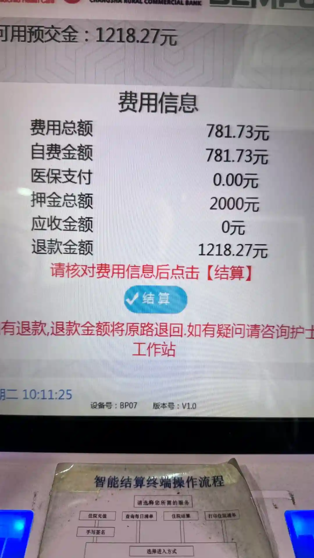 宝宝费用:交2000,只用了781,退了1218
