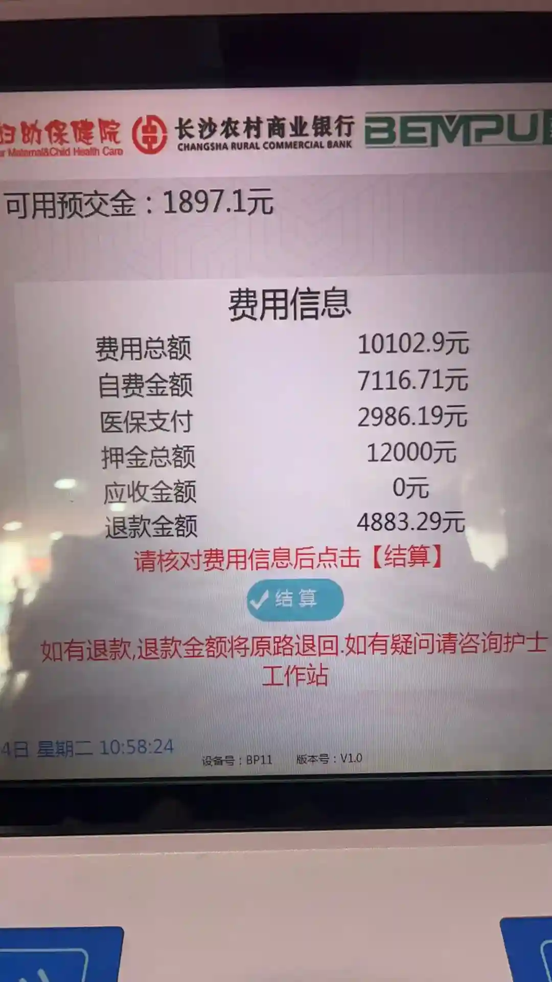 1.10-1.14是住的长沙市妇幼单间8️⃣0️⃣一晚,住院预交6000,然后后面又补交6000,宝宝2000,自己总费用10102,无指症按顺产医保报销2986,实际花费💲7116(这里还包括前面三天的要➖1000多,大概6000左右吧)