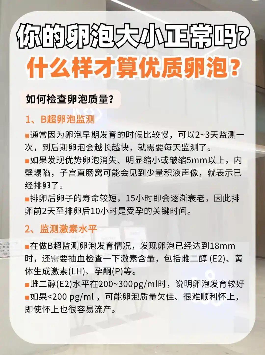 当雌二醇(E2)水平在200~300pg/ml时,说明卵泡发育比较好。