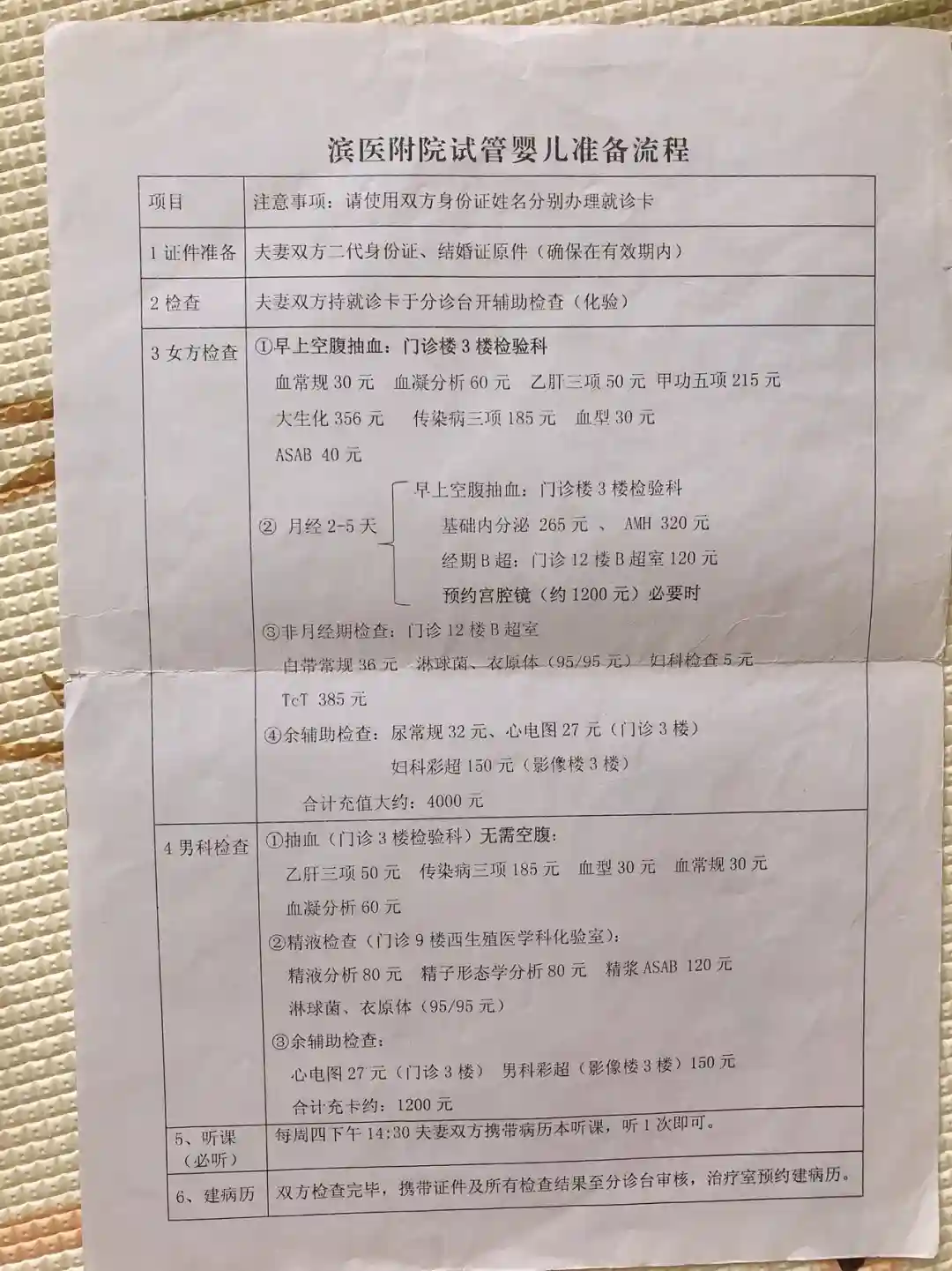 图一是流程和需要做的项目,图二是具体的科室,还有需要注意的事项。