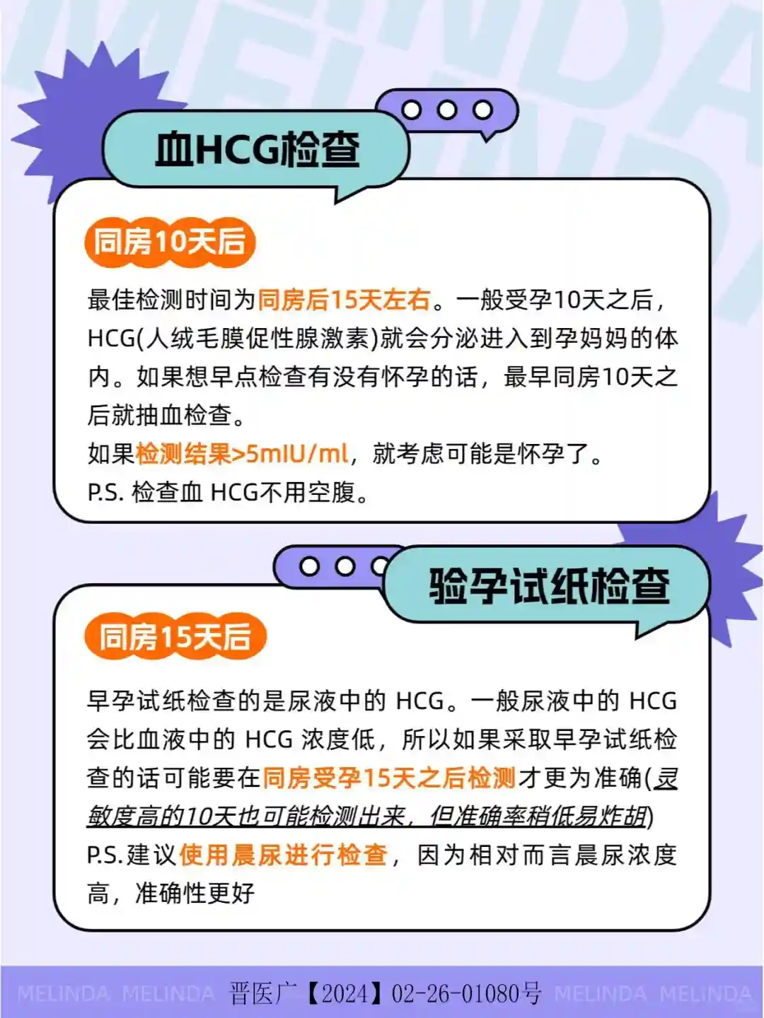 ✔️ 血HCG检查:同房10 天后,最好是15天左右