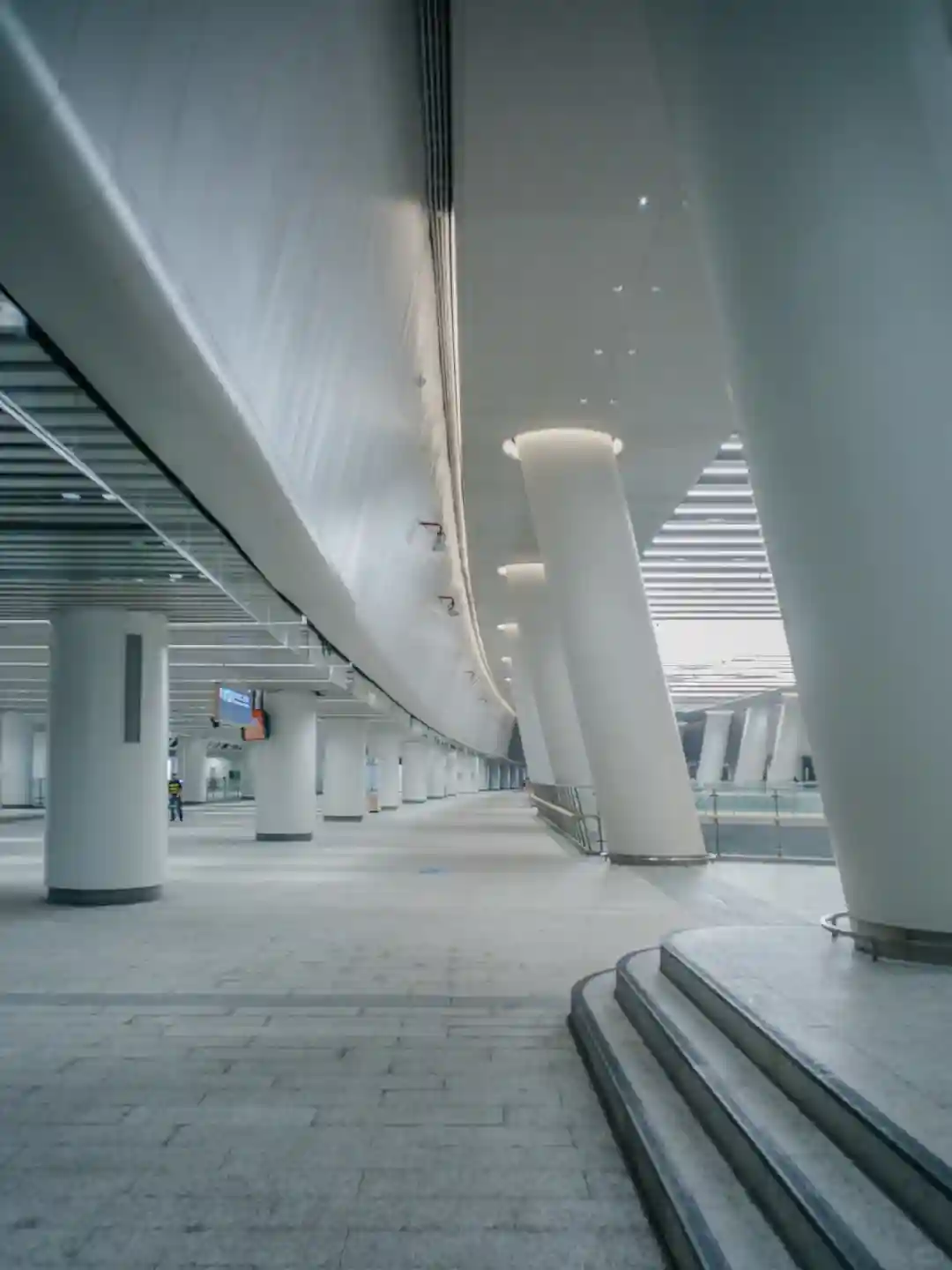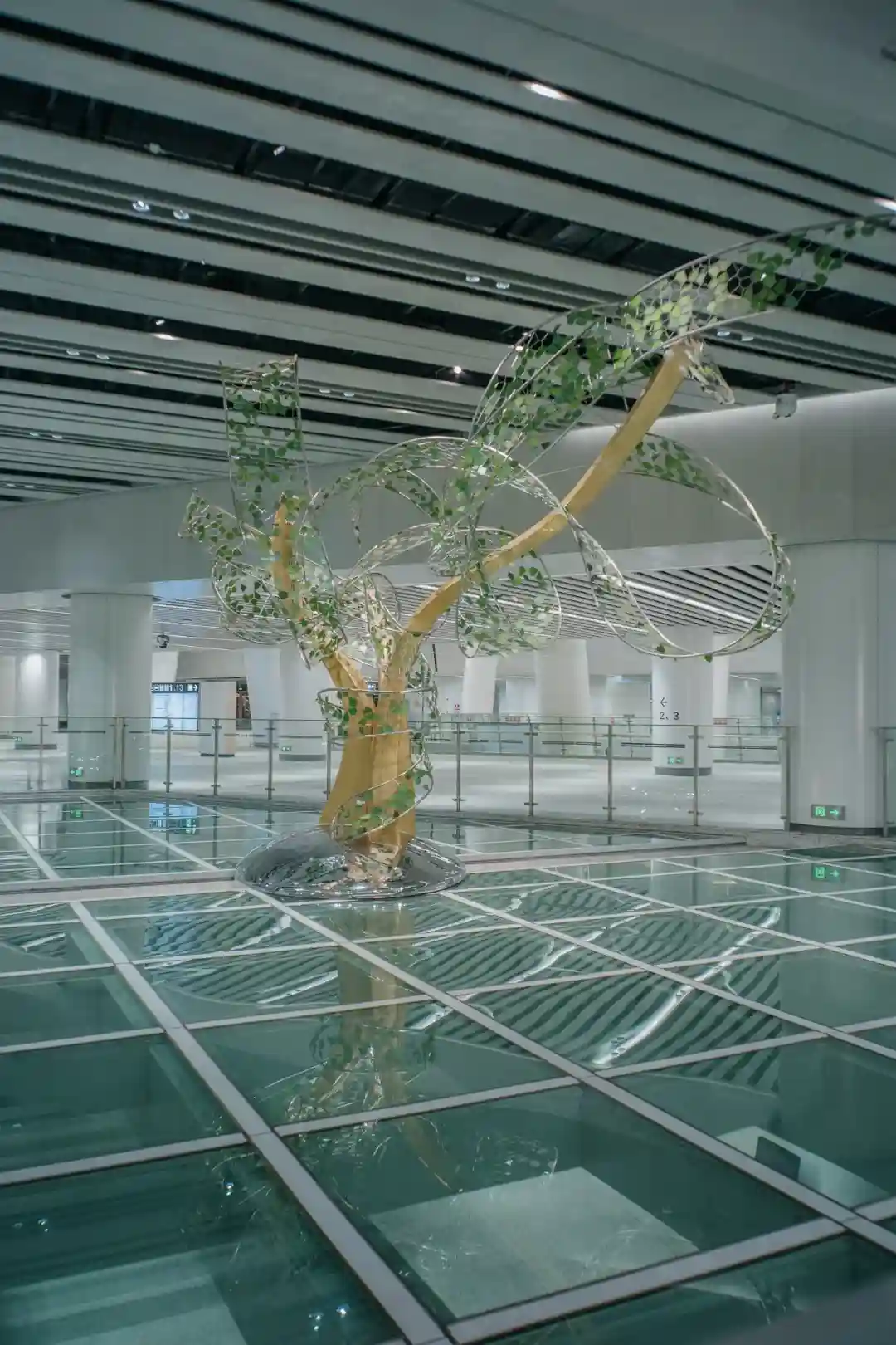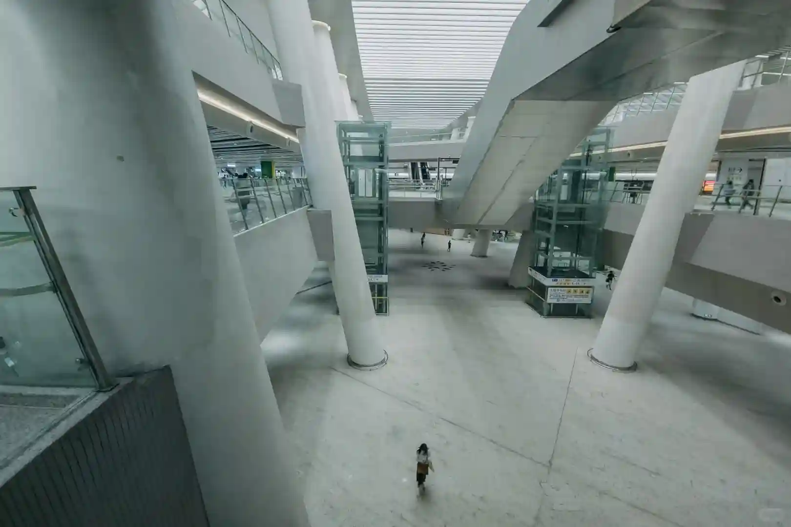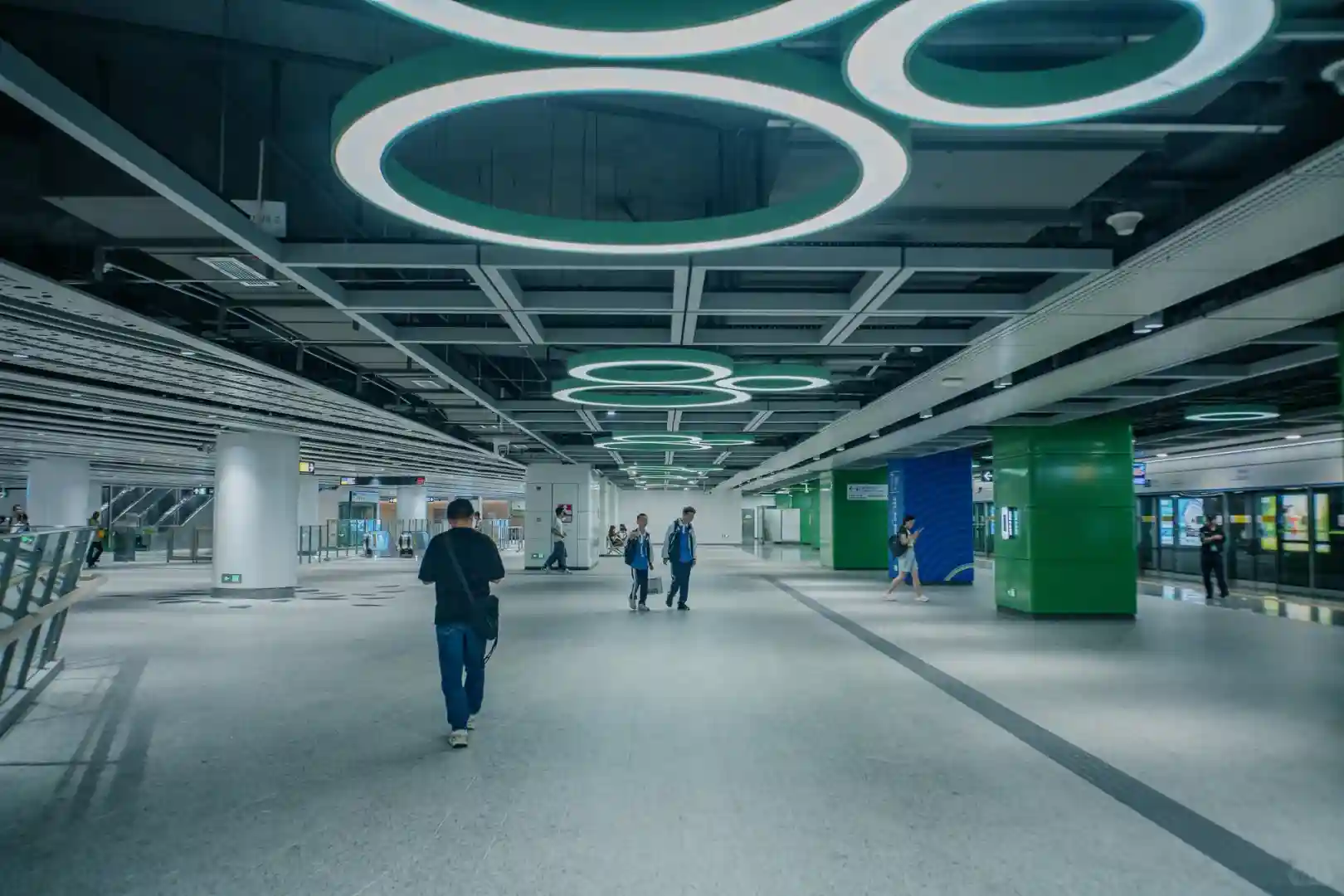 比不少商场都要大的大中庭,超宽的过道,一改地铁站逼仄的空间感受。现在感觉很空旷,但旁边就是深圳体育馆,举办大型活动时对人流疏导空间的需求还是很大的。