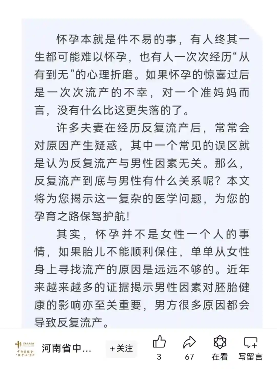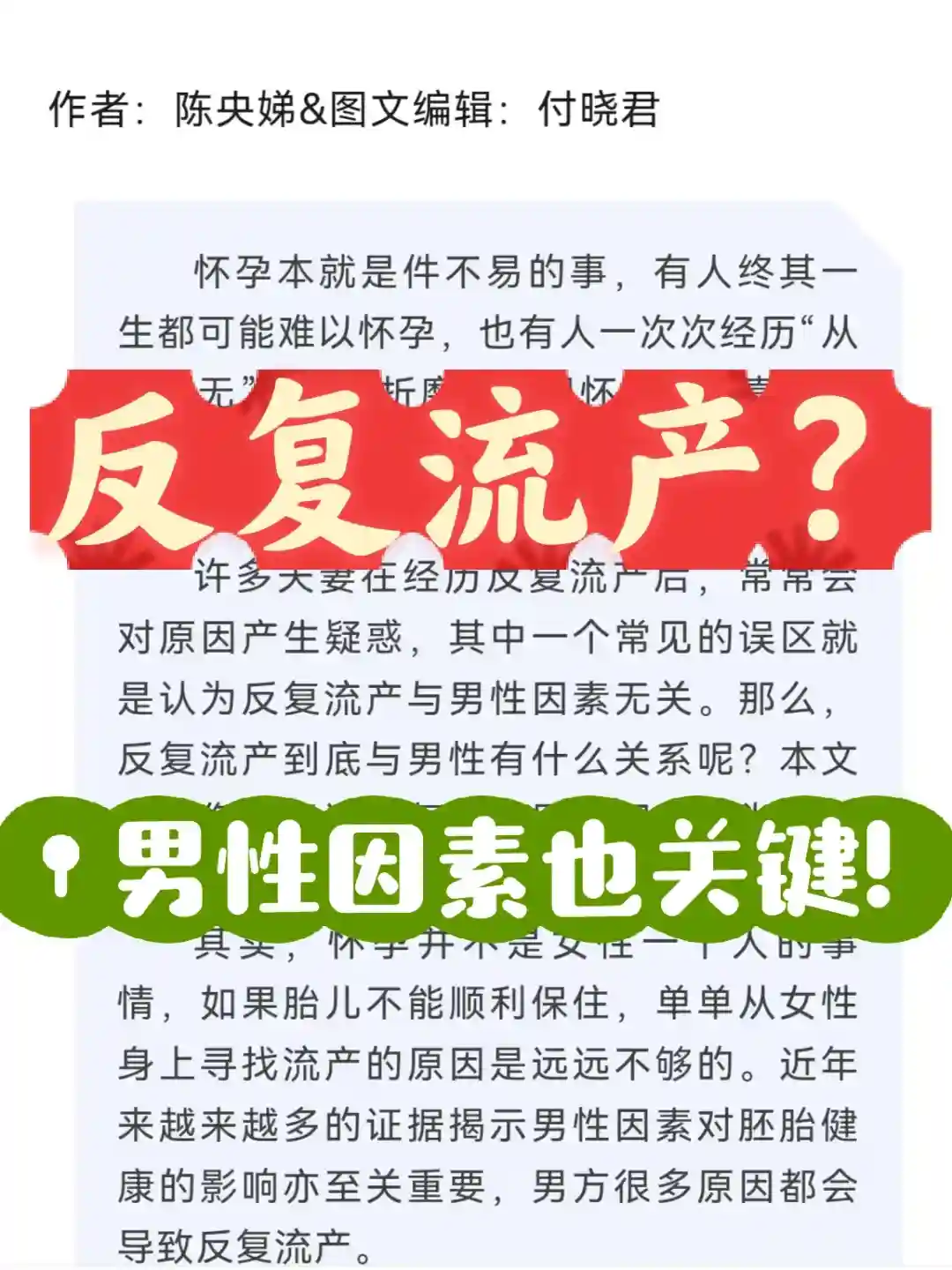 【拒绝反复流产】男性因素也关键