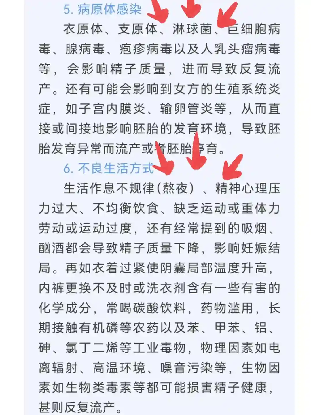 病原体感染:影响精子质量,导致流产。