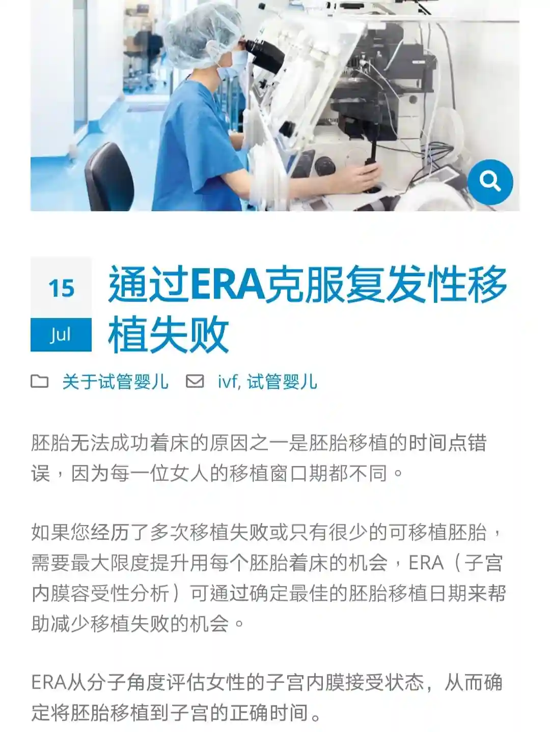 促使我去了解這项檢測的是因為我兩次移植失敗了,而又沒有任何人能告訴我原因。所以我上网搜了很多資料,发现这项技术,在台灣的生殖医院已經很普及了。而且能明显提高胚胎著床率,所以我关注了。