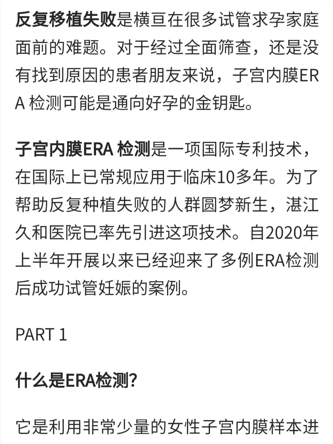 图7显示:子宫内膜ERA 检测是一项国际专利技术,在国际上已常规应用于临床10多年。为了帮助反复种植失败的人群圆梦新生,湛江久和医院已率先引进这项技术。自2020年上半年开展以来已经迎来了多例ERA检测后成功试管妊娠的案例。