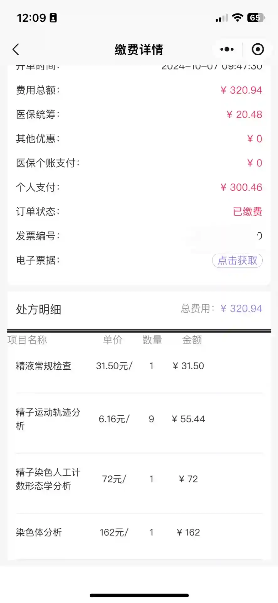 8月生化了,8月到10月一直是我这边在中药调理,到了10月才想起让老公去做精子详细检查,开了三个项目精子常规、形态、碎片化检查,自费300元。