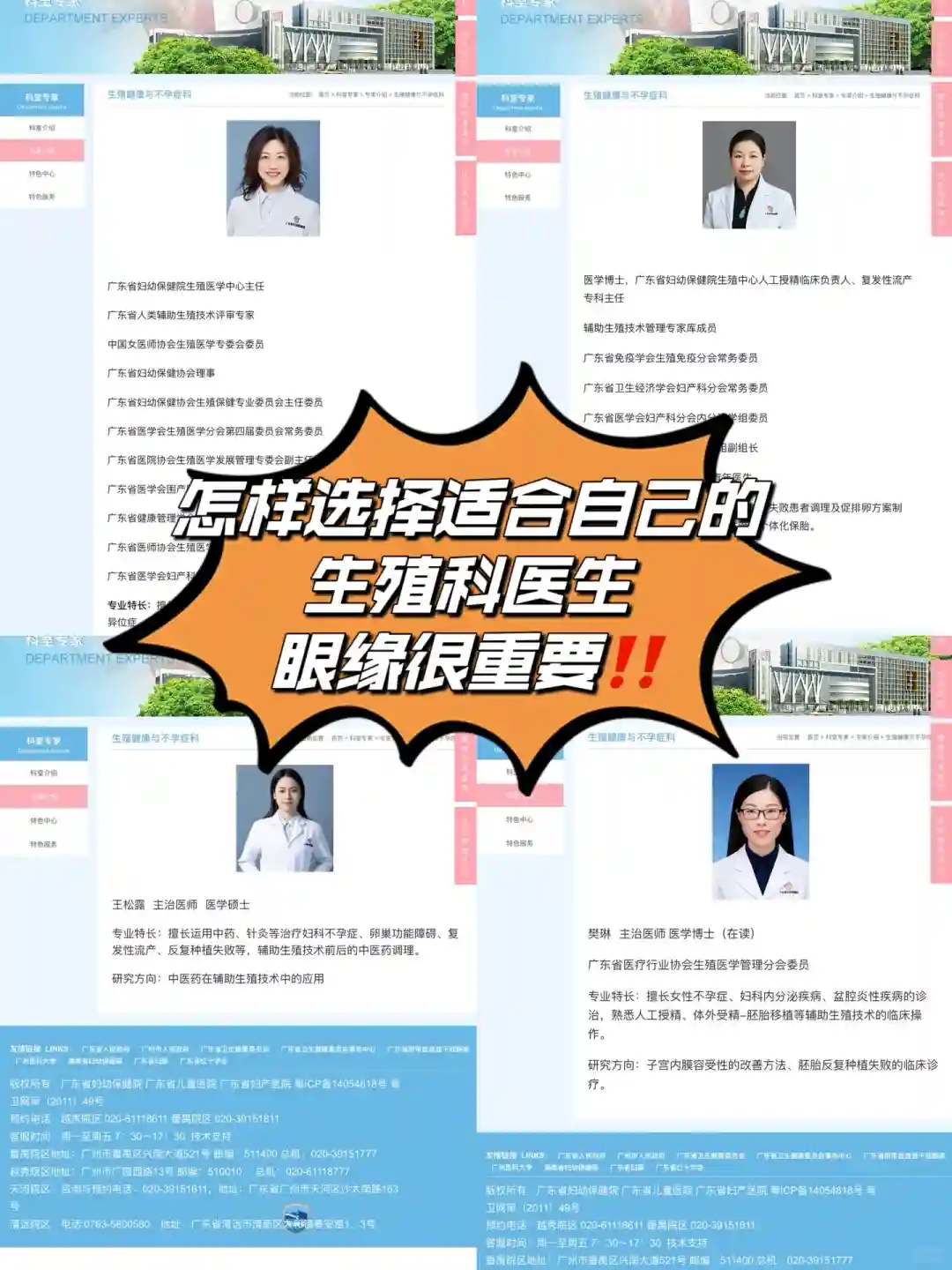 总的来说,选择生殖科医生不仅仅是看医术和经验,更要看眼缘和这个医生与自己的沟通和互动,以及和宝宝之间的缘分。对我来说,樊琳医生、董梅主任、张曦倩主任和王松露中医都是合得来我眼缘的医生,并且我相信她们能够给我提供最好的治疗方案和关怀。希望我的经验能够对你们有所帮助哦!💕#广东省妇幼保健院生殖科