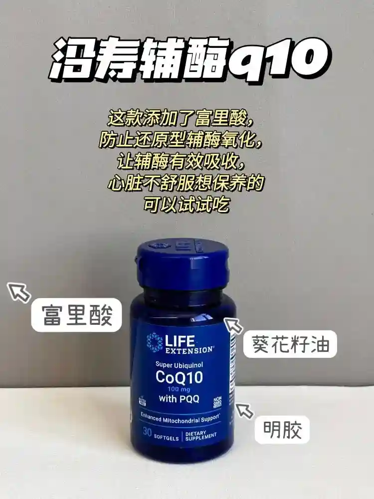 PS:辅酶q10是脂溶性的,需要随餐或者餐后10分钟内服用,不能空腹吃,不然可能肠胃不舒服