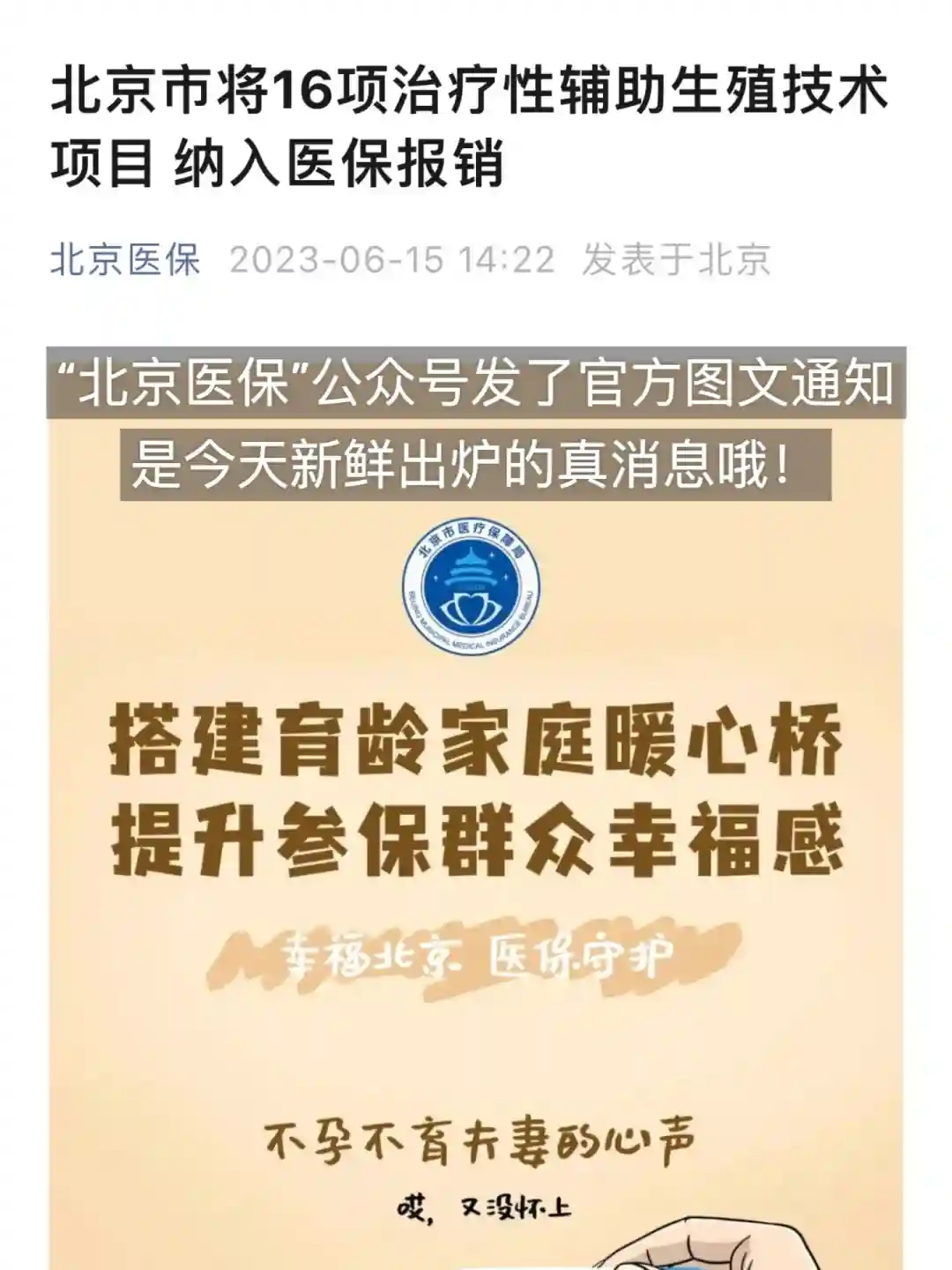 🎉7月1日起,试管人授纳入北京医保啦!