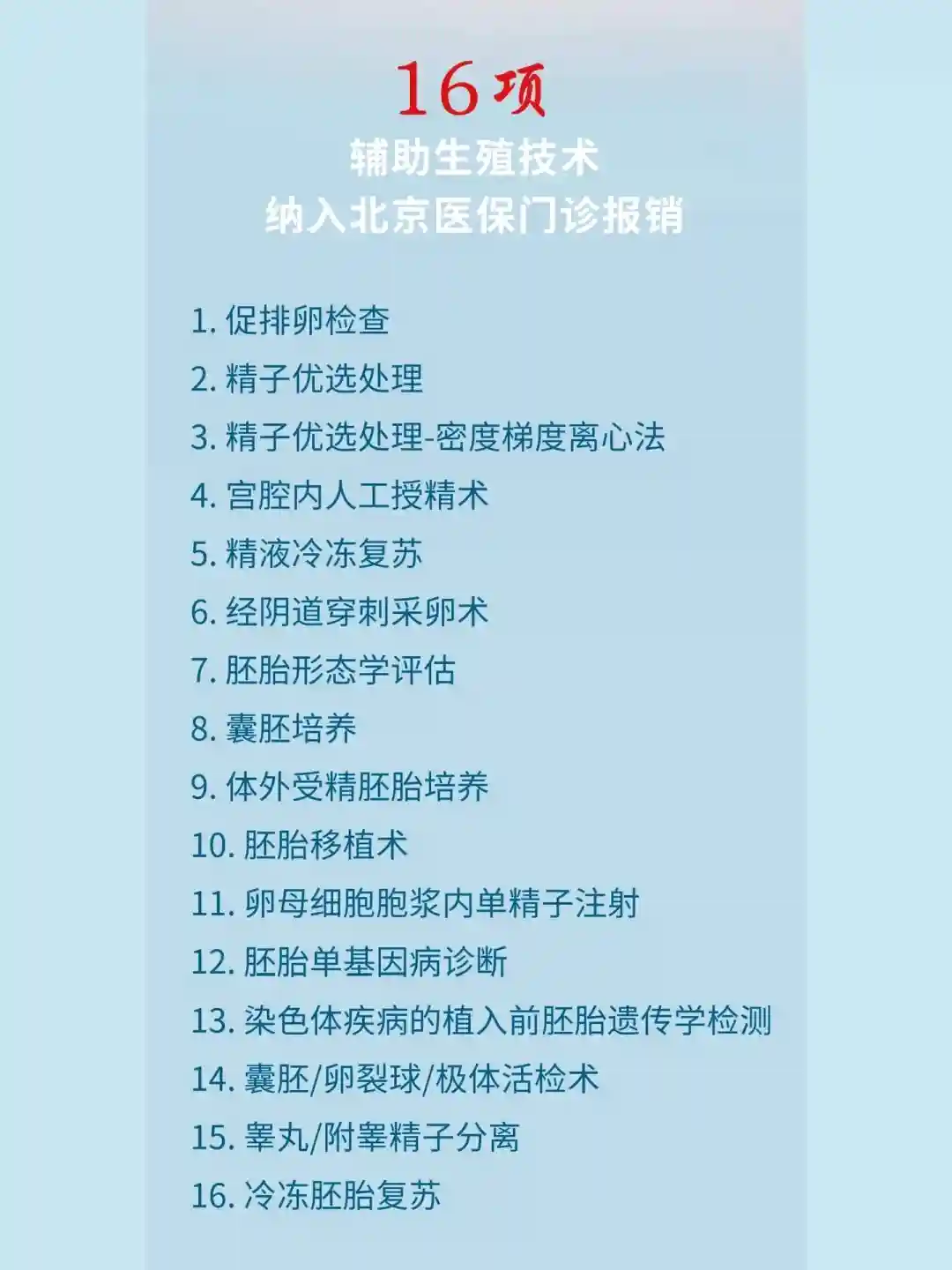 💝16项治疗性辅助生殖技术项目具体包括: