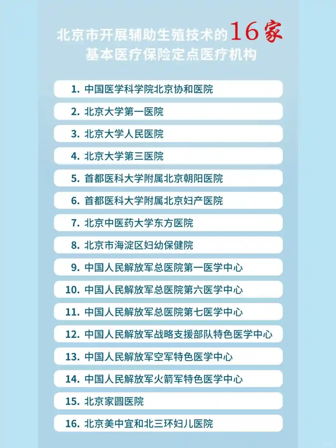 💝16家医保定点医疗机构可开展辅助生殖技术服务: