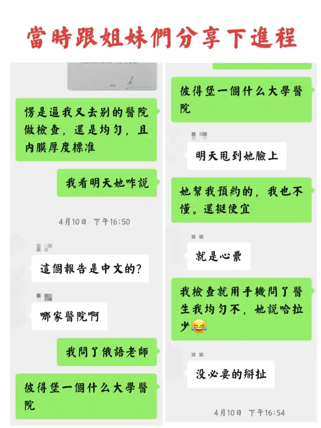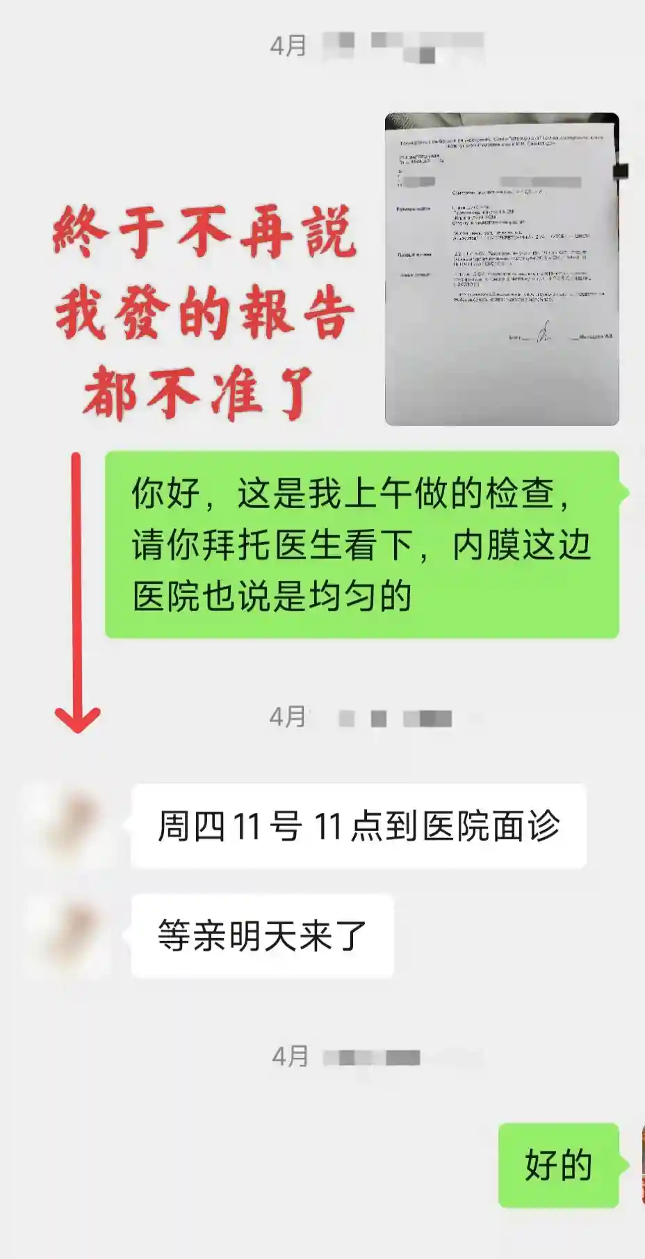 当我把高等公立🏥报告发给“主任”后,她没说什么,就让我第二天去诊所——后面也就没我与她的聊天记录了,不过有别的佐证——我跟同期被坑小姐妹们的聊天记录。