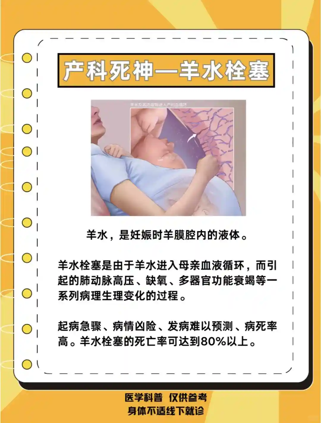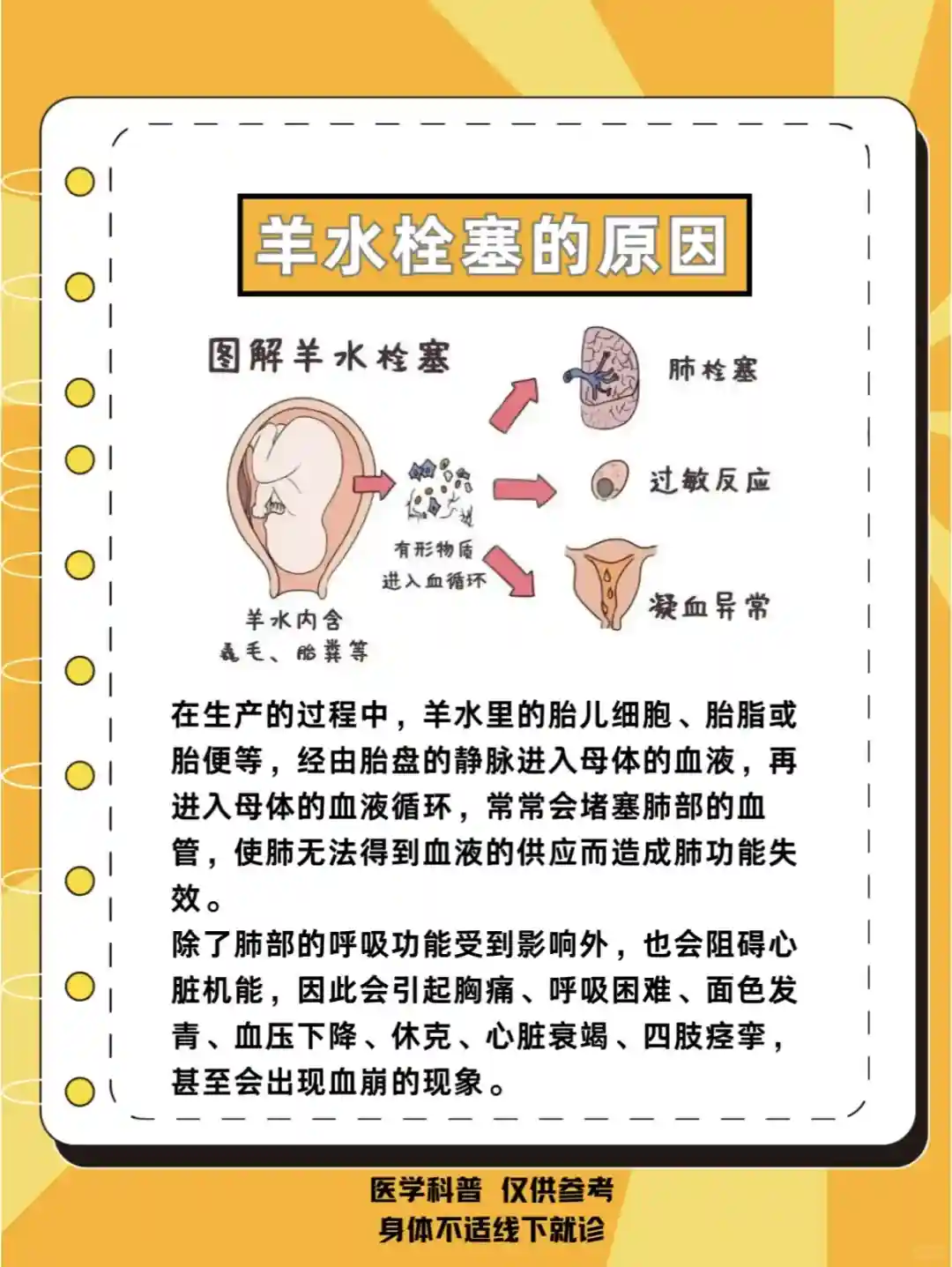 2⃣️威胁产妇生命:羊水栓塞并发休克、呼吸衰竭等症状。严重时可危及生命。