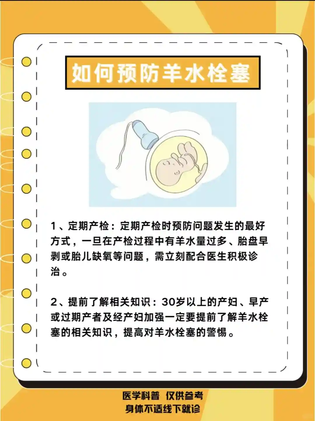 1⃣️定期产检:遵循医生的建议,定期进行产前检查、及时了解胎儿的发育情况。