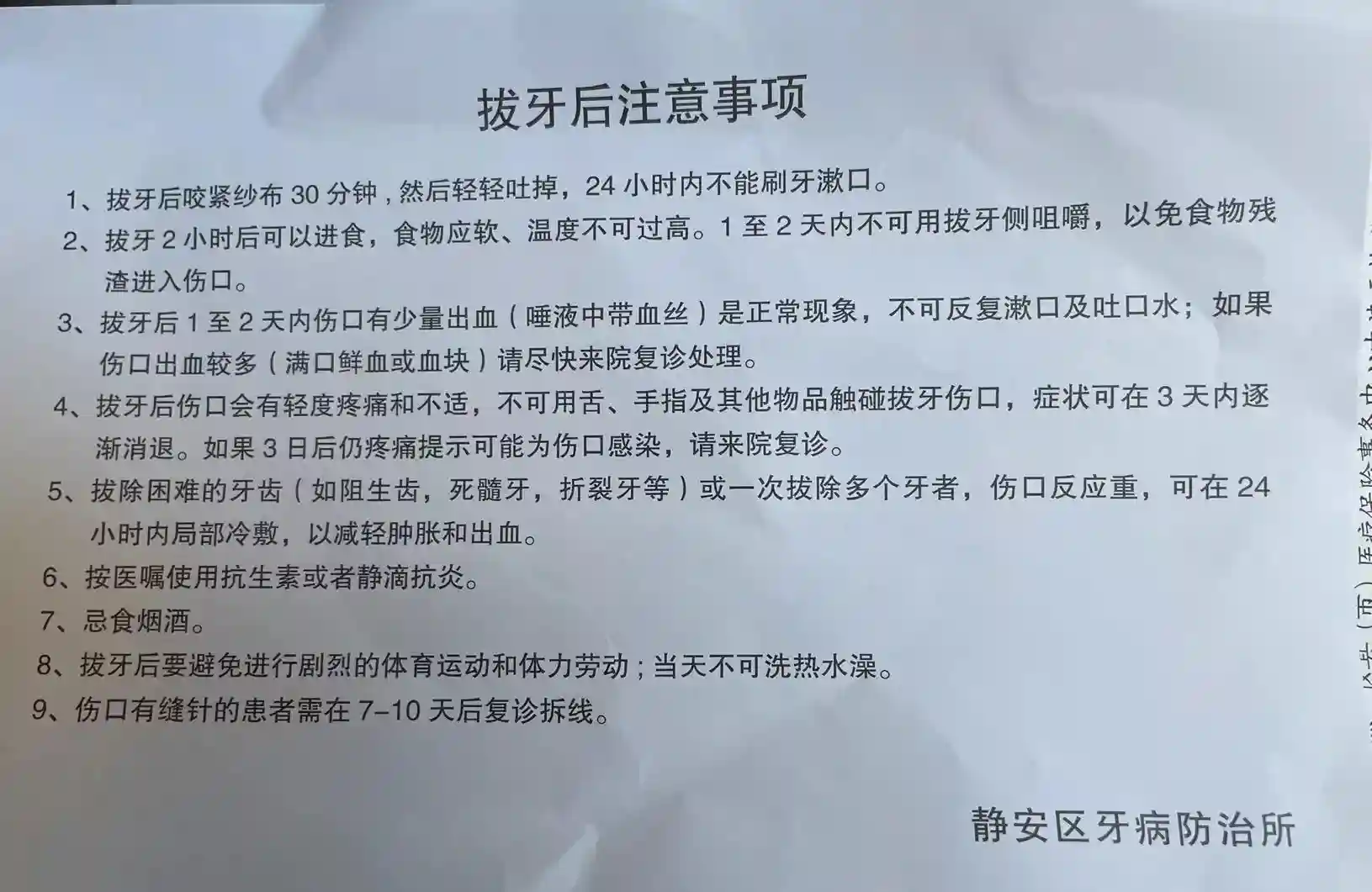拔牙术后注意事项