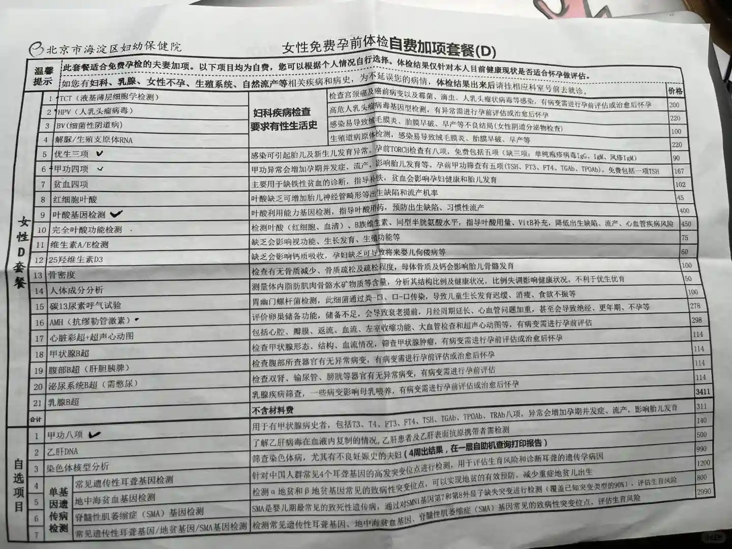 🤙女性-优生三项(把优生检查就补全了,算上免费的一共八项)