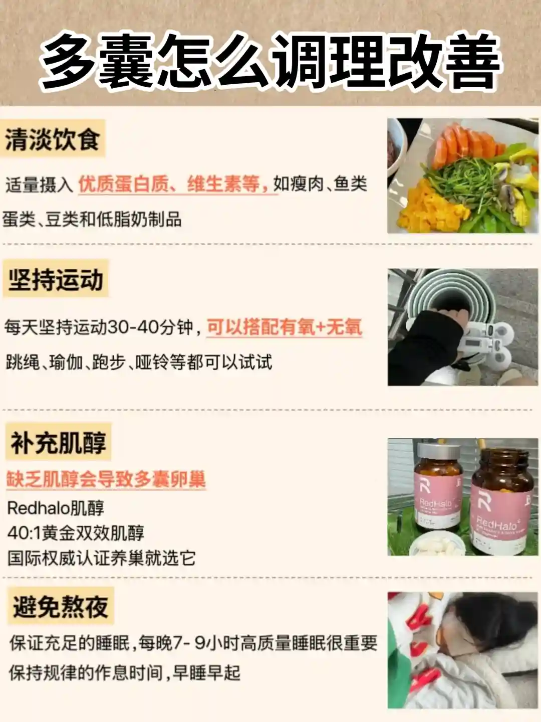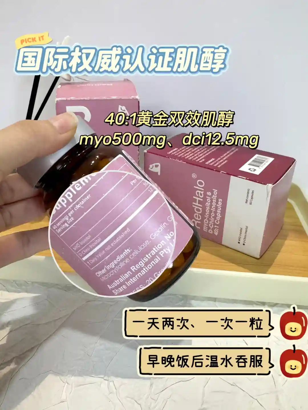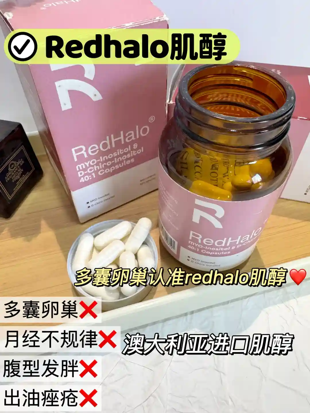 内调:主要补充肌醇,选择redhalo肌醇,40:1的黄金双效肌醇,一天两次、一次一粒,多囊患者的好选择!
