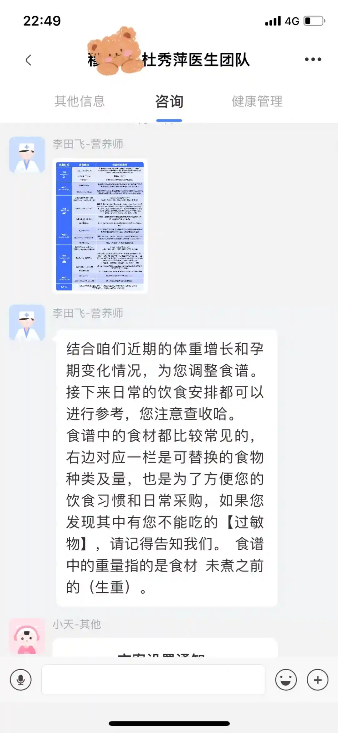 营养师还会根据我的孕周和喜好为我提供专🍠得饮食计划,再也不用担心不知道能吃什么啦