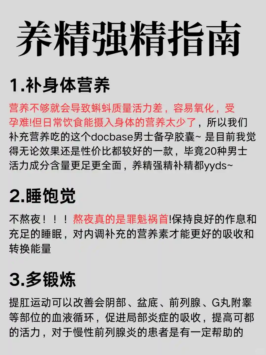 再去改掉坏习惯,调整生活作息和补充足够的营养,让身体有足够的营养吸收,才有好的状态和能量,养好小蝌蚪!